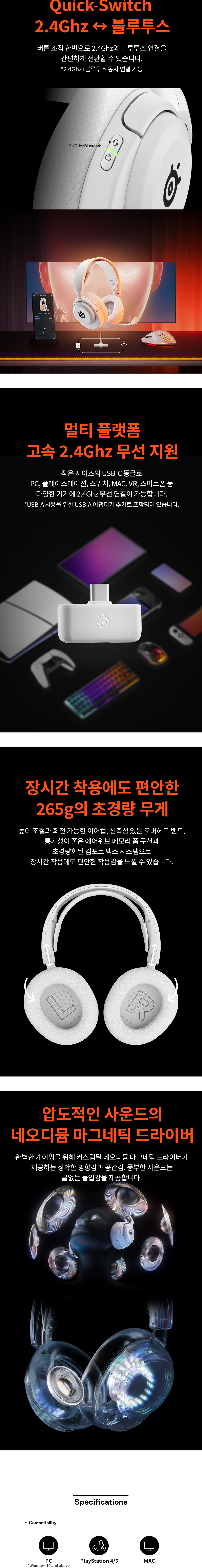 스틸시리즈 아크틱스 노바 5 무선 게이밍 헤드셋 화이트