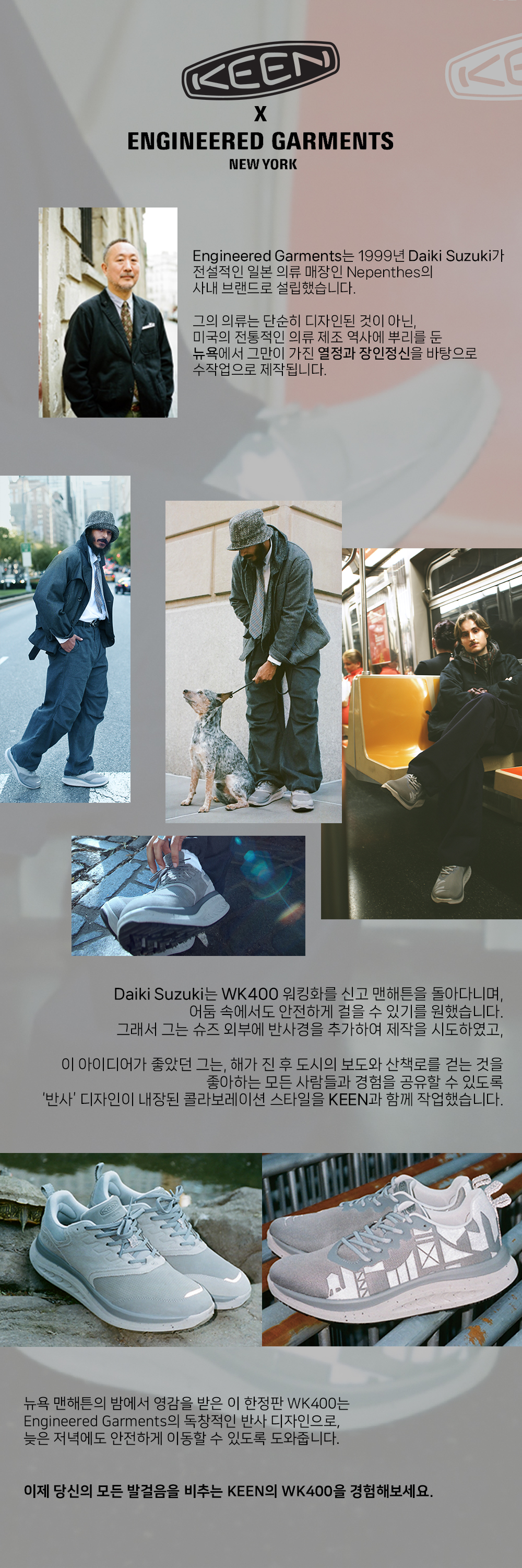 킨 x 엔지니어드 가먼츠 WK400 남성 가죽 러닝화 밝은 그레이