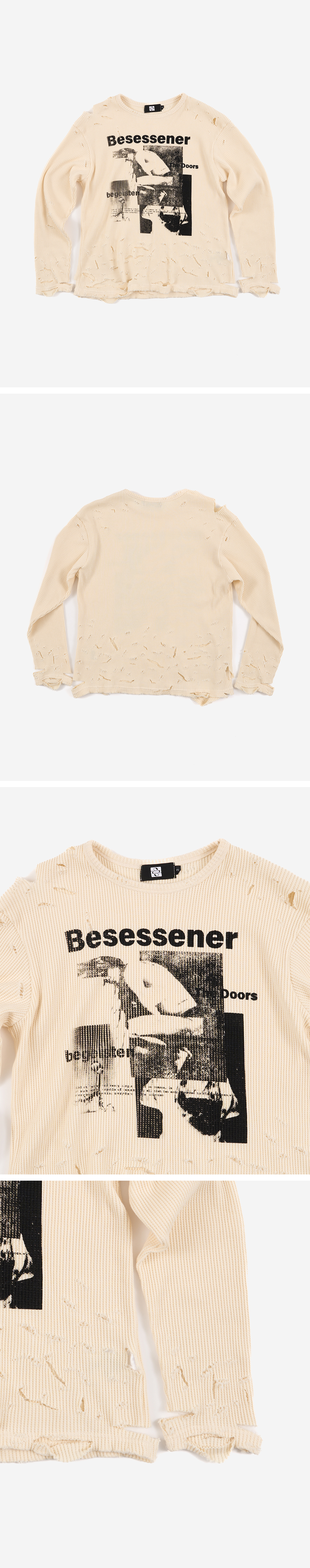 선데이오프클럽 베제서너 핸드 디스트레스드 와플 티셔츠 베이지