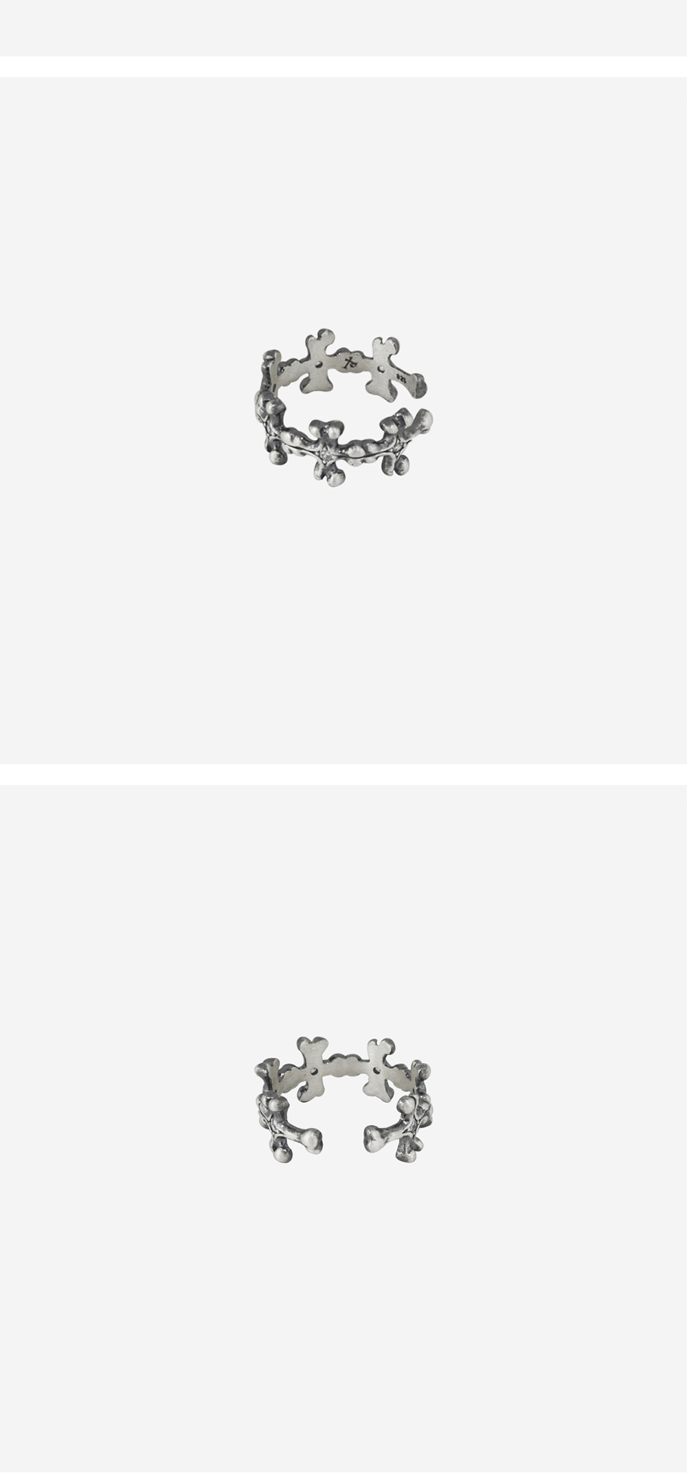 * 본 제품은 사전 예약 주문 제품으로, 3월 4일 (수) 15:00 ~ 3월 8일 (일) 15:00까지 프리오더 접수를 진행합니다. * 구매건은 4월 13일 (월) ~ 4월 15일 (수)부터 순차적으로 발송 예정입니다. - 925 silver rings. 기호에 따라 여러 링의 레이어링으로 보다 밀도 높게 연출할 수 있습니다. -제품에 마킹된 925 표기는 함량 92.5%를 표기한 법정 순은 표기법입니다. -무른 성질 소재 특성상 가벼운 완력으로 변형 및 손상이 발생될 수 있으며, 잦은 사이즈 조절 시 손상될 수 있습니다. -순은 제품 특성상 화학 성분,습기가 많은 곳, 땀 등에 의해 변색이 발생할 수 있습니다. 보관 시 지퍼백 등에 밀봉 보관 부탁드립니다. -제작 과정에서 발생되는 자연스러운 공정 현상은 불량 사유에 해당하지 않습니다. (미세한 스크래치 등)