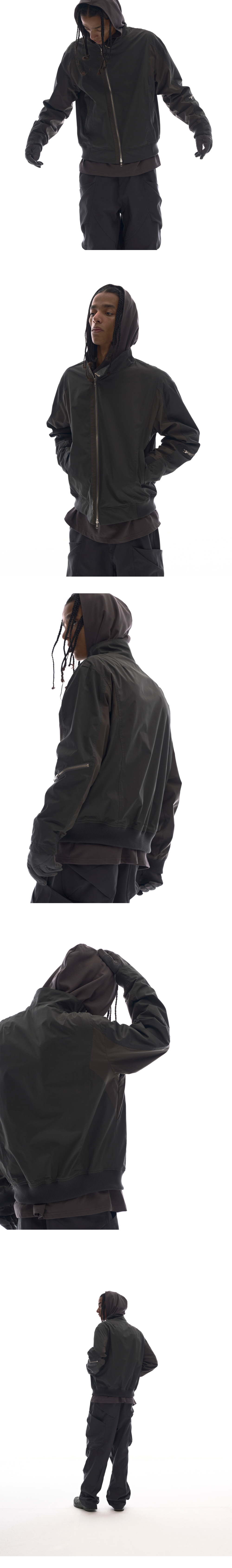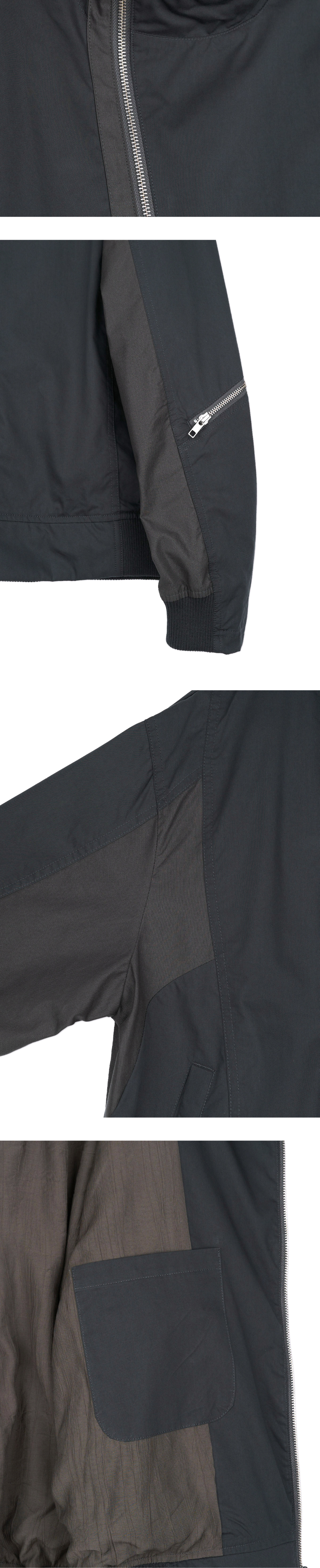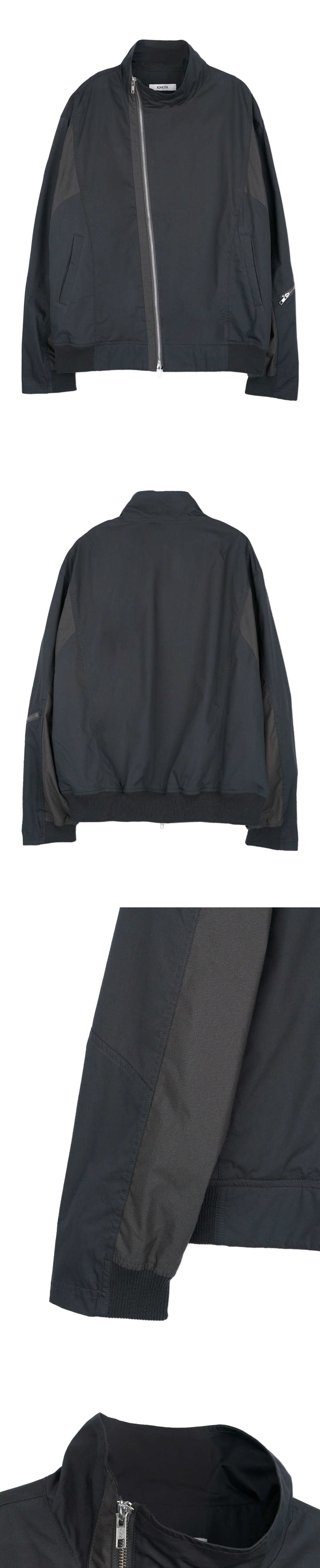 YKK 2WAY ZIPPER FRONT ASYMMETRIC ZIPPER LEFT SLEEVE ZIPPER POCKET 2 FRONT POCKET 1 INSIDE POCKET