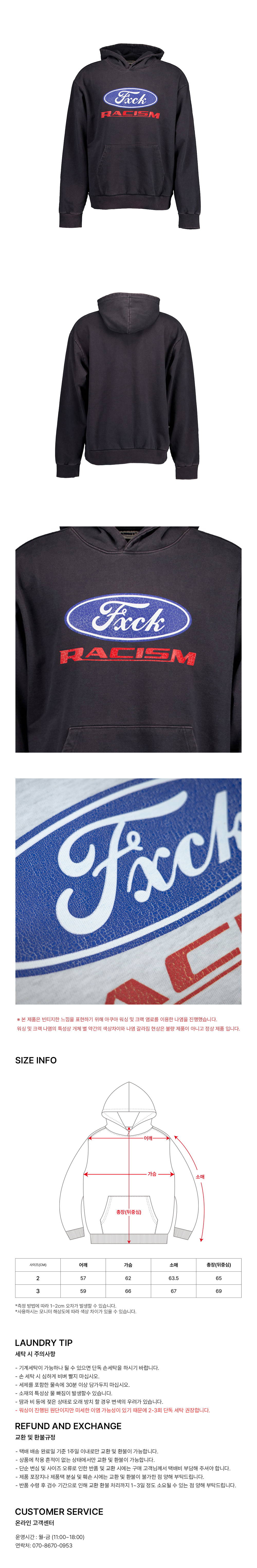 아노트 F.R.C 로고 빈티지 워싱 후디 차콜