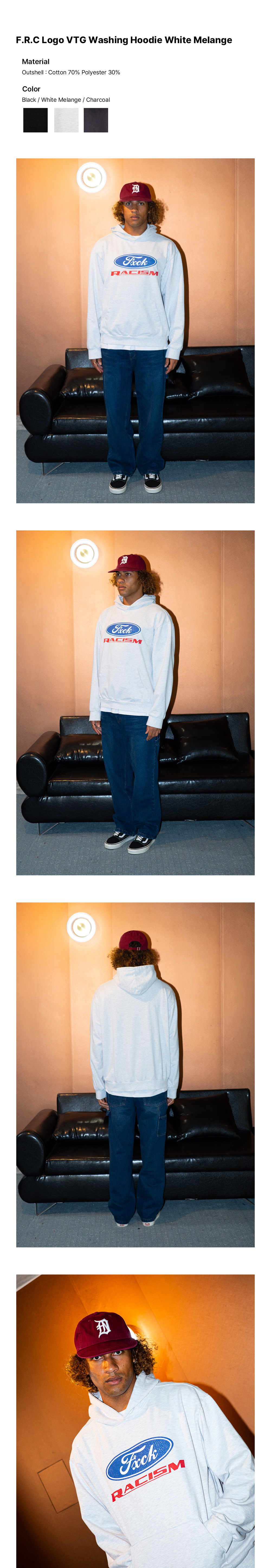 아노트 F.R.C 로고 빈티지 워싱 후디 화이트 메란지