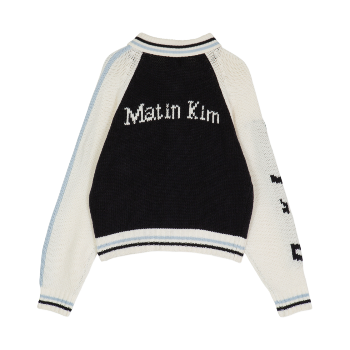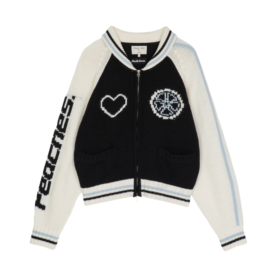 (W) Matin Kim x Peaches Jacquard Graphic Knit Zip Up Navy