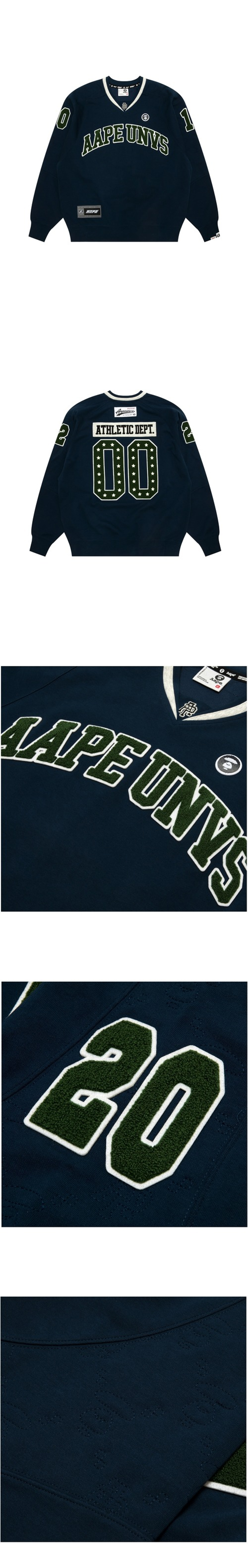 아이스하키 유니폼을 연상시키는 에이프의 크루넥 스웨트셔츠입니다. - 세미 오버사이즈 핏 - 전/후면 로고 아플리케 및 자수 디테일 - 소매 원단에 적용된 로고 자수 - 약간 두꺼운 원단 *모델샷은 동일 모델의 다크 옐로우 컬러입니다.