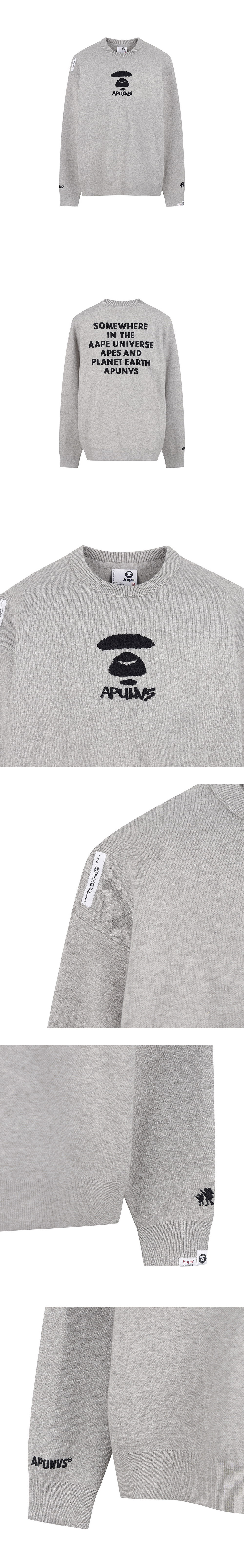 깔끔한 디자인의 니트에 더해진 귀여운 로고가 매력적인 에이프의 베이직 니트입니다. - 전/후면 시그니처 로고 및 그래픽 자수 - 소매 로고 자수 및 탭 디테일 - 어깨 로고 탭 디테일 - 적당한 두께감