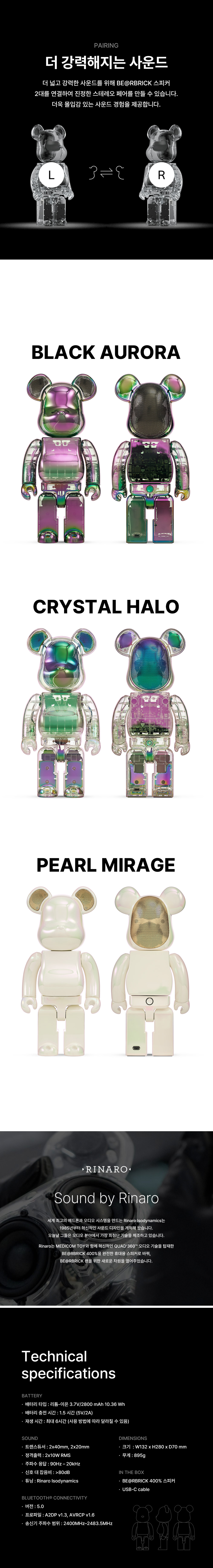 베어브릭 오디오 400% 포터블 블루투스 스피커 크리스탈 헤일로