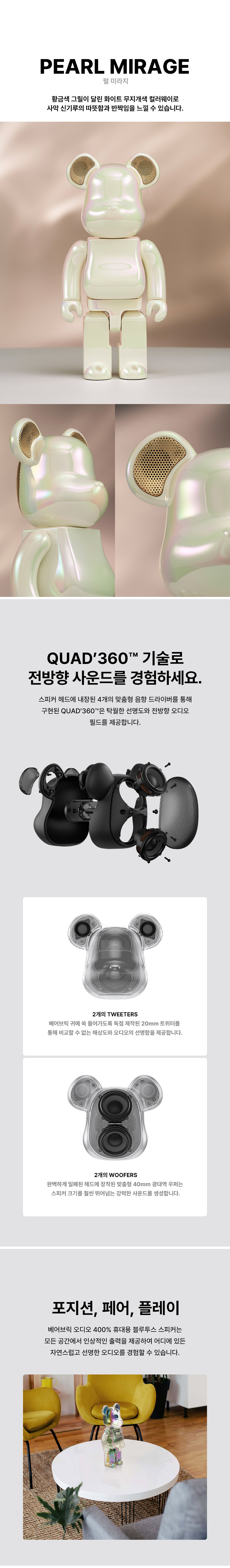 베어브릭 오디오 400% 포터블 블루투스 스피커 펄 미라지