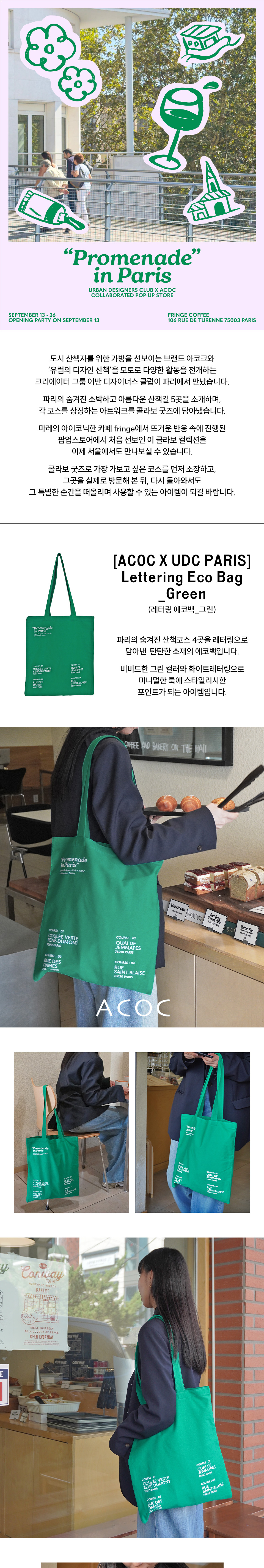 [아코크 X 유디씨 파리] 레터링 에코백_그린