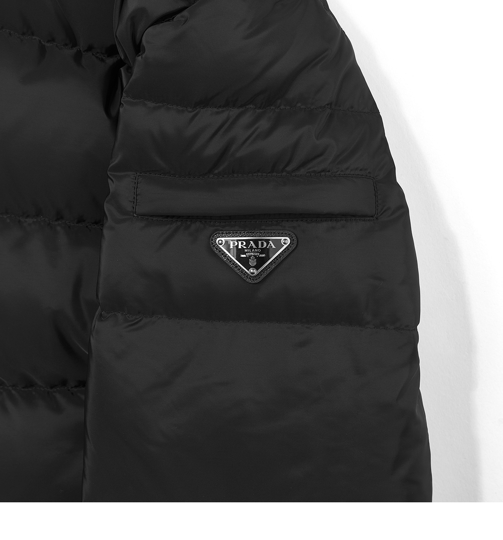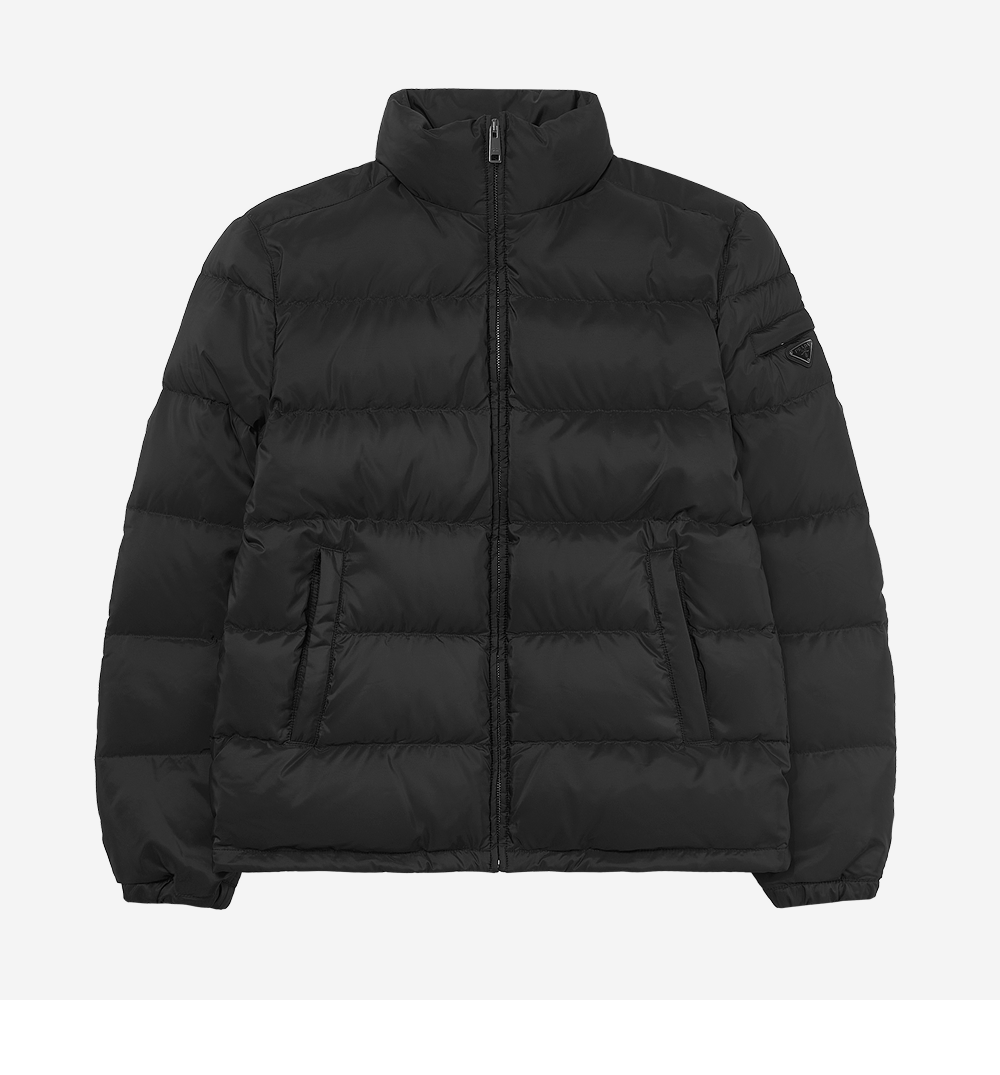 프라다 트라이앵글 로고 다운 재킷 블랙