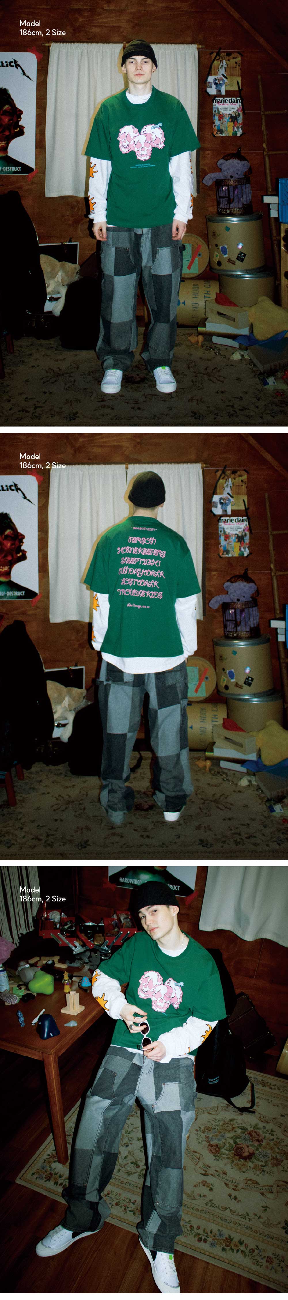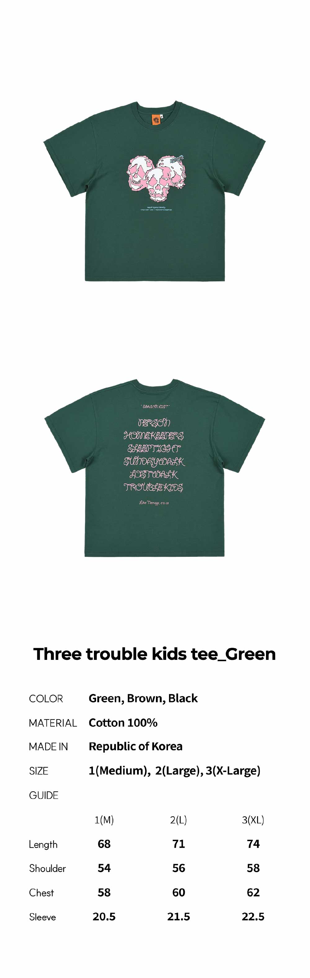 이알에스코 쓰리 트러블 키즈 티셔츠 그린
