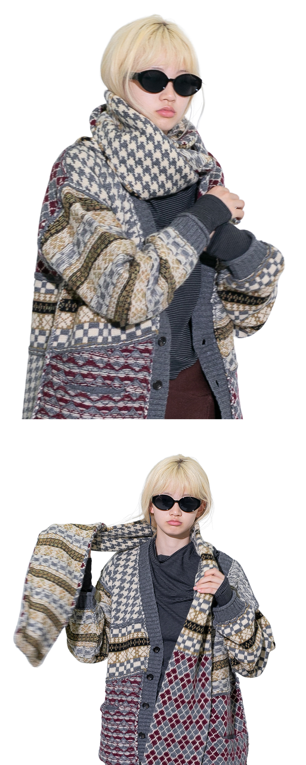 다양한 니트 원단을 재조합해 새롭게 탄생한 퍼버즈의 패치워크 스카프입니다. - 리사이클 울 소재 - 여러 니트 원단을 하나의 스카프로 만든 디자인