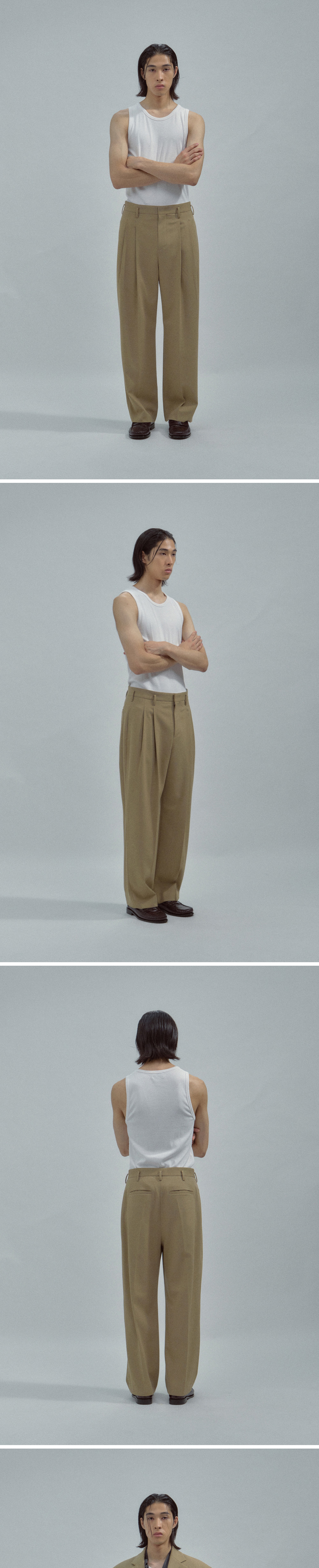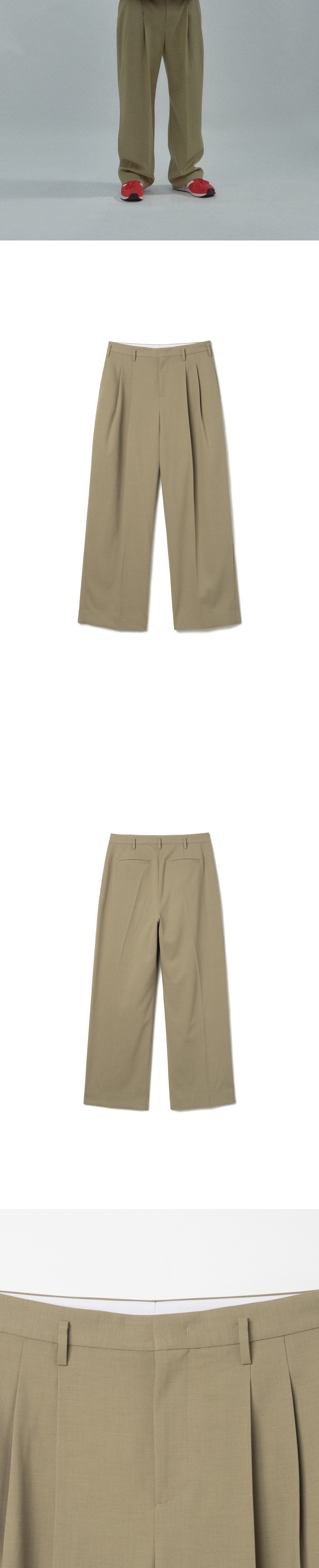 노클 리드 울 슬랙스 탄
