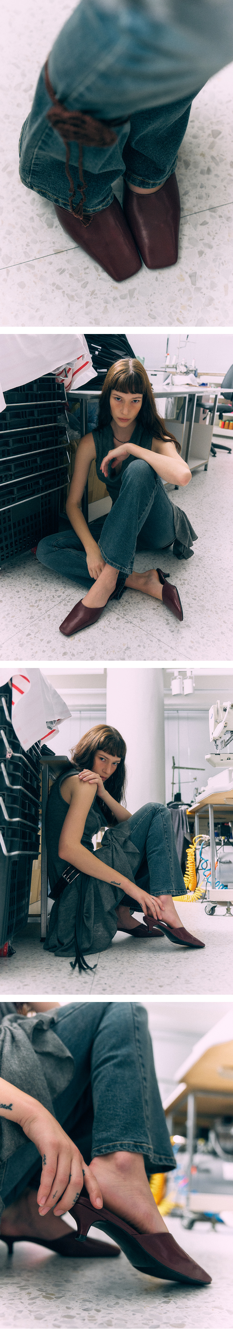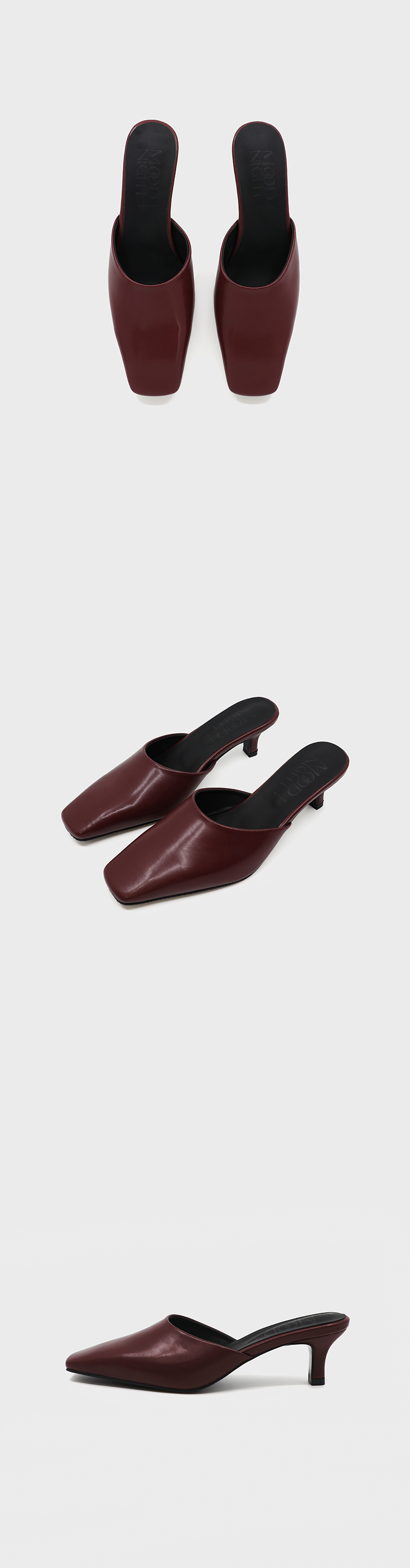 스퀘어 바디에 안정감있는 키튼힐로 간결하고 세련된 무드의 뮬
