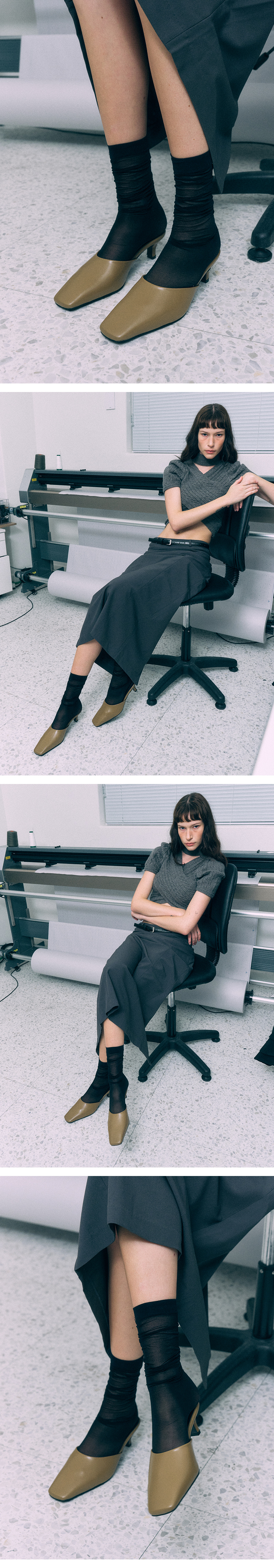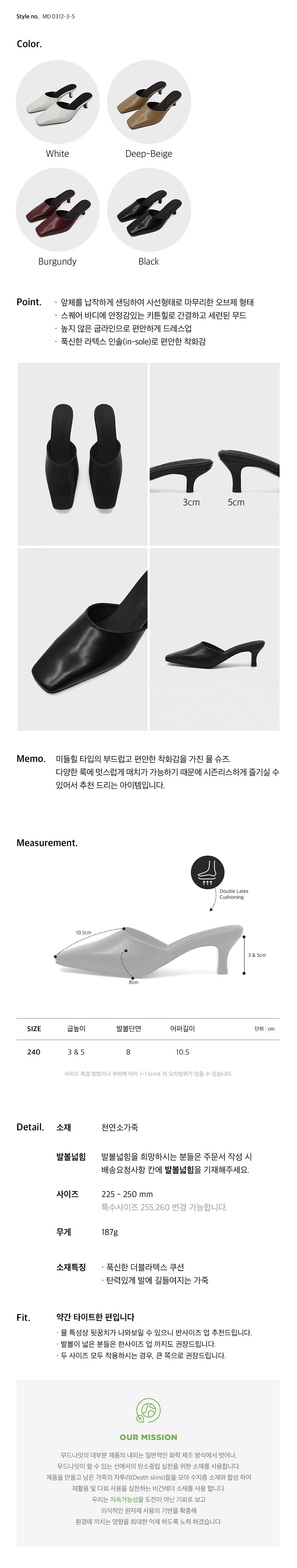 스퀘어 바디에 안정감있는 키튼힐로 간결하고 세련된 무드의 뮬