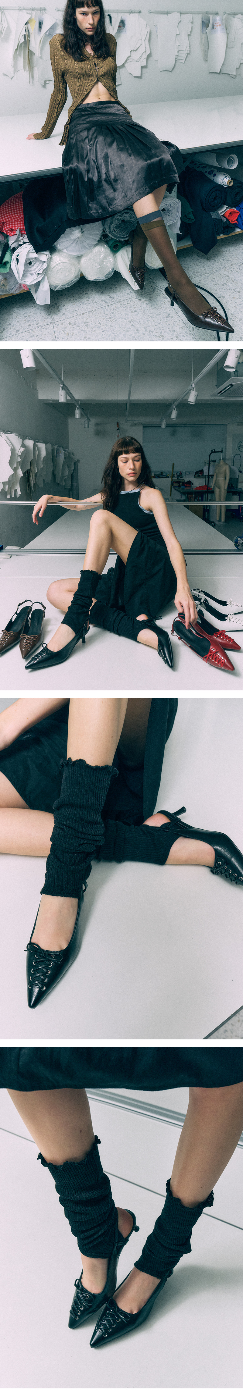 코르셋을 변주한 위트있는 디자인으로 단품만으로도 드레스업되는 키튼힐 슬링백