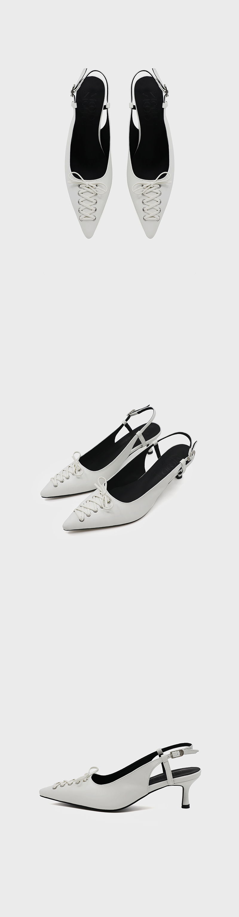 코르셋을 변주한 위트있는 디자인으로 단품만으로도 드레스업되는 키튼힐 슬링백