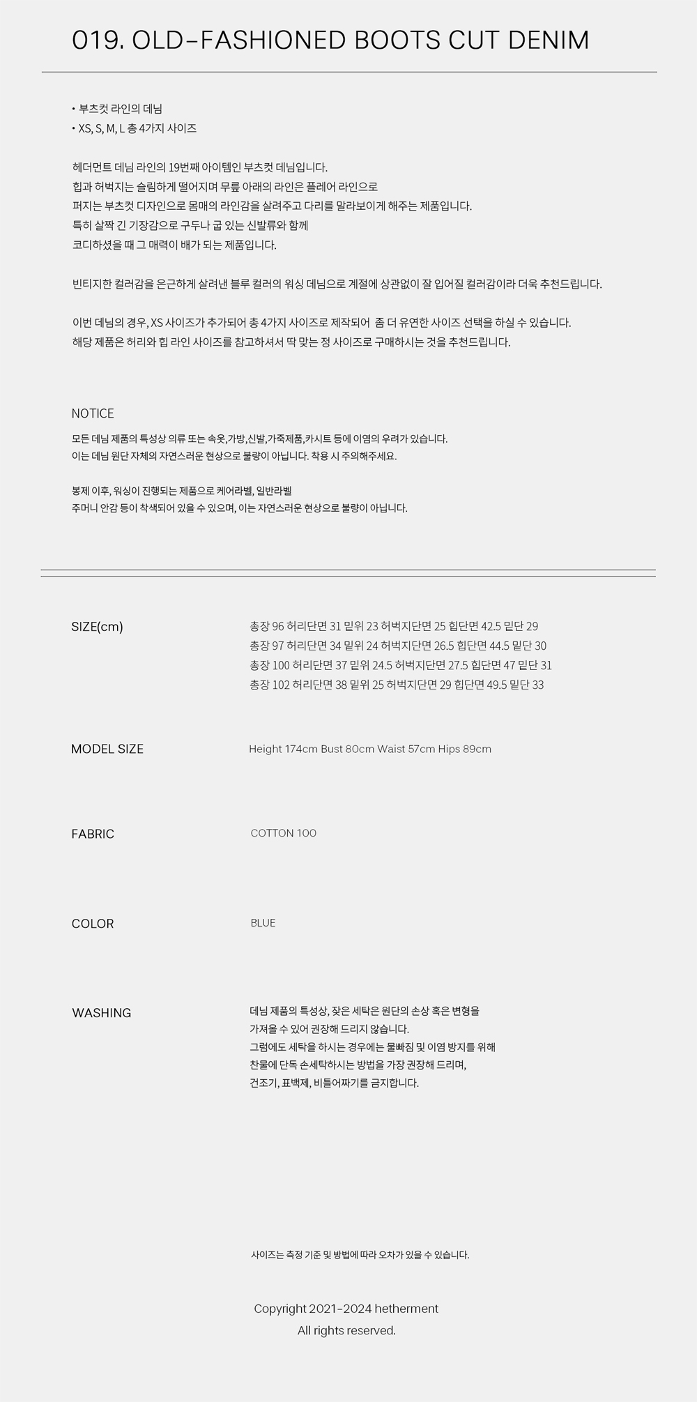 헤더먼트 019 올드 패션 부츠 컷 데님 블루