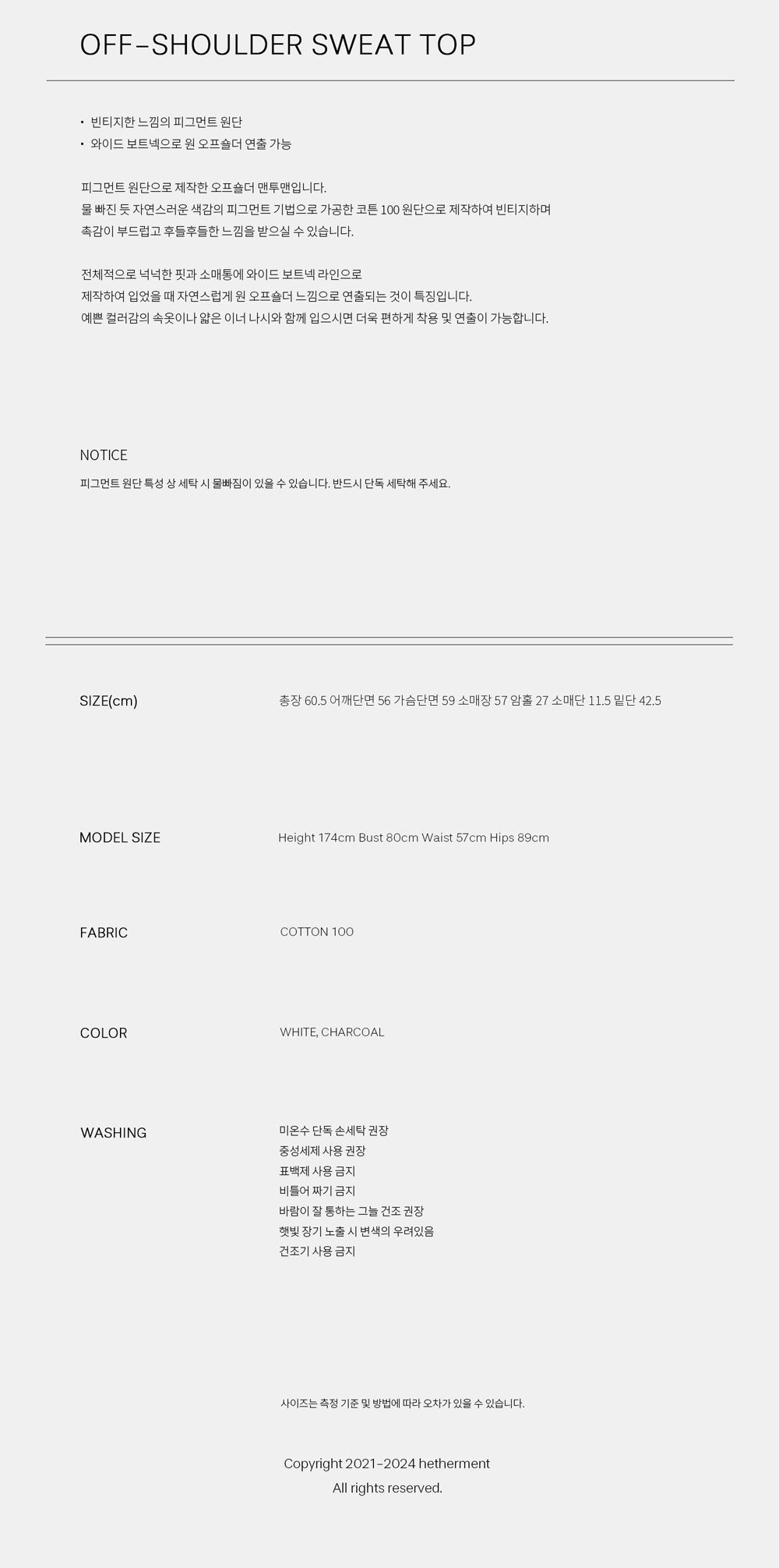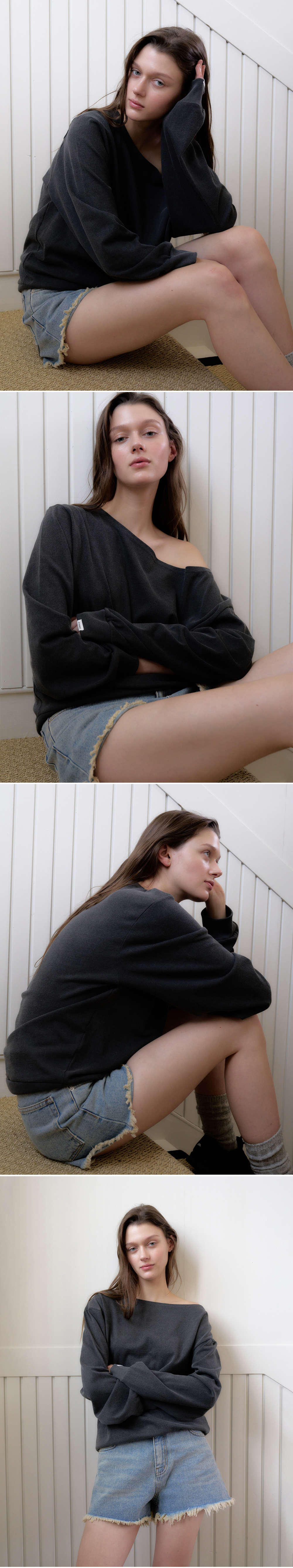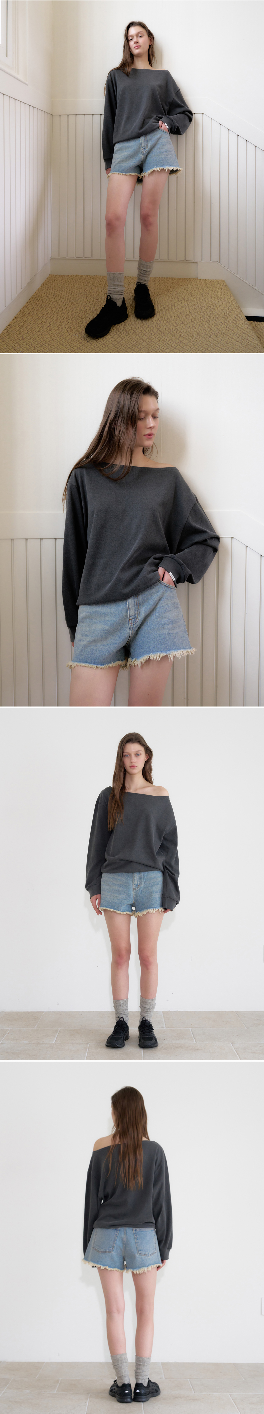 헤더먼트 오프 숄더 스웻 탑 차콜