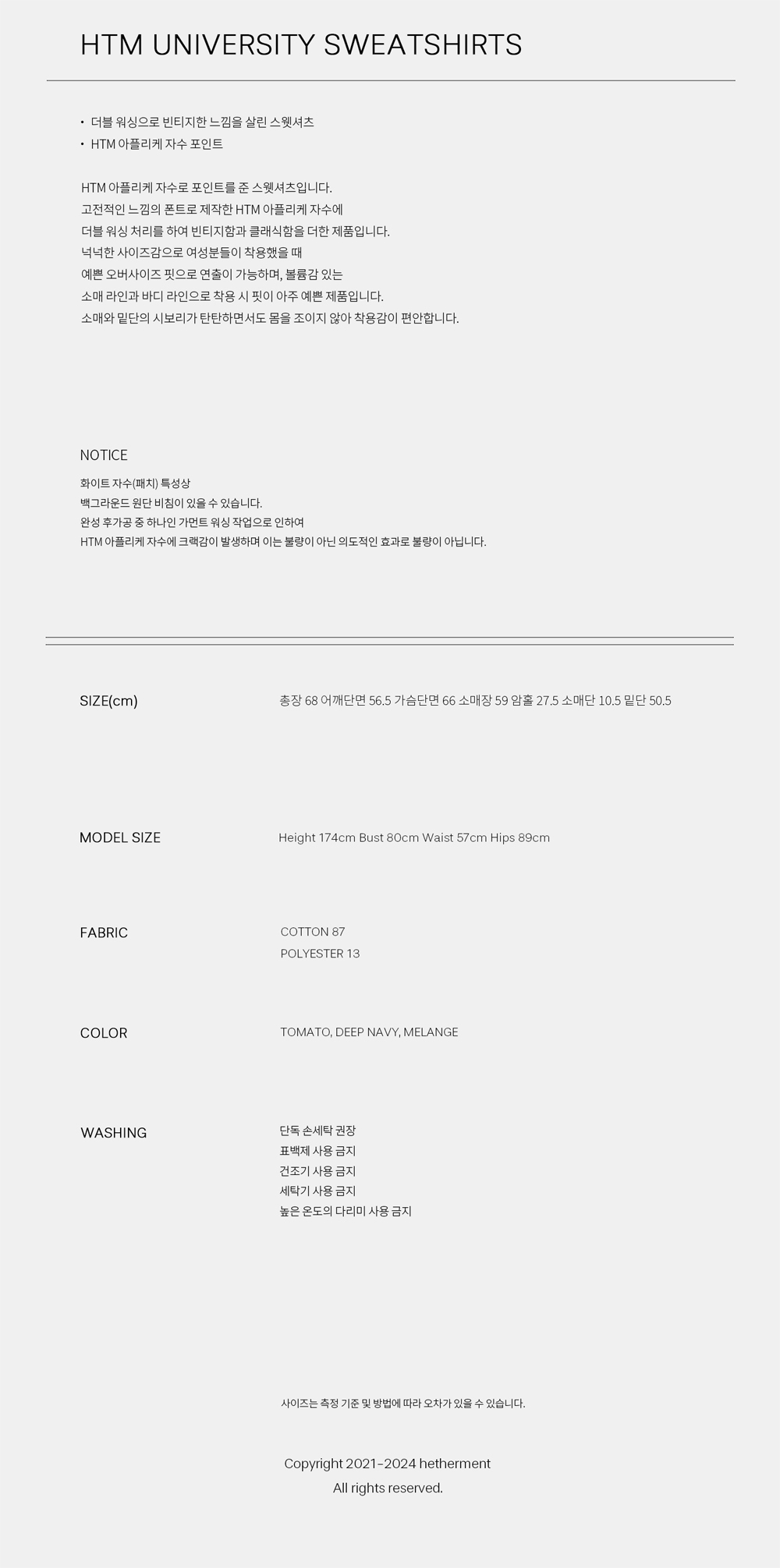 헤더먼트 HTM 유니버시티 스웻셔츠 딥 네이비