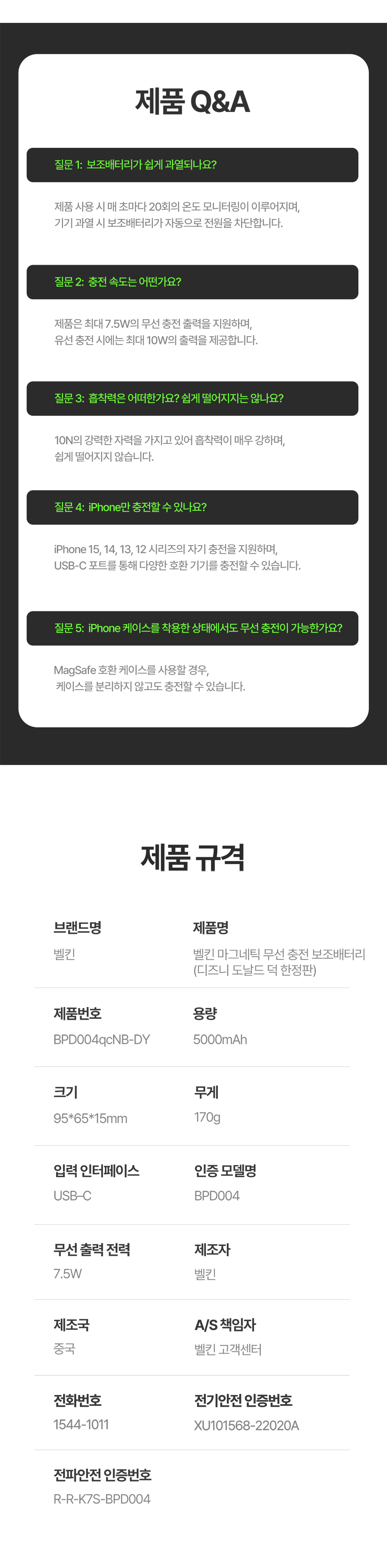 벨킨 디즈니 도널드덕 5000mAh 맥세이프 마그네틱 무선 보조배터리