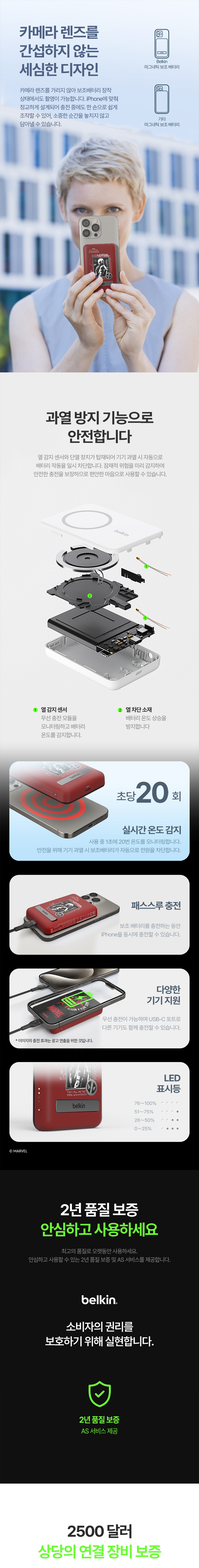 벨킨 마블 데드풀과 울버린 5000mAh 맥세이프 마그네틱 무선 보조배터리