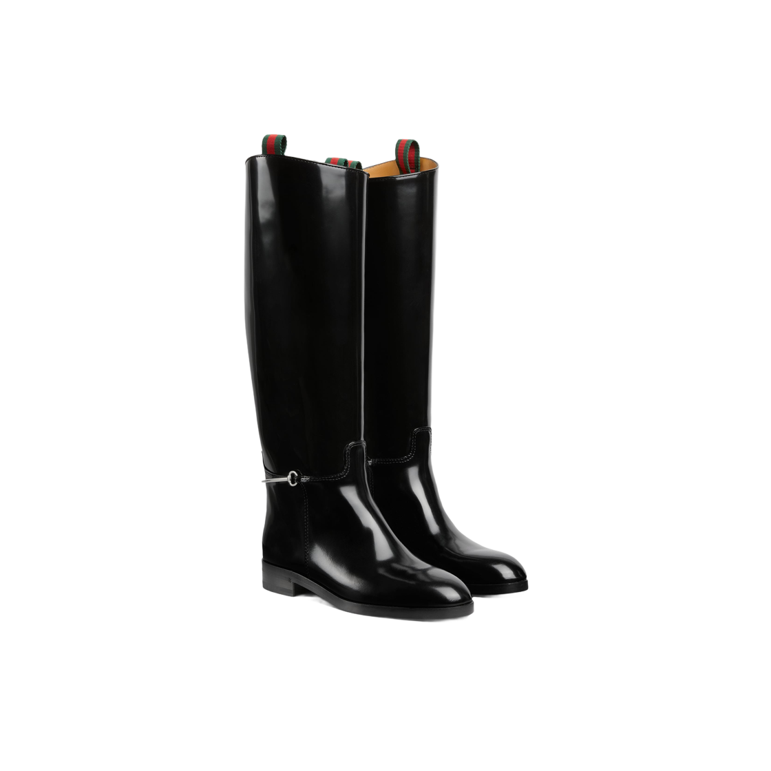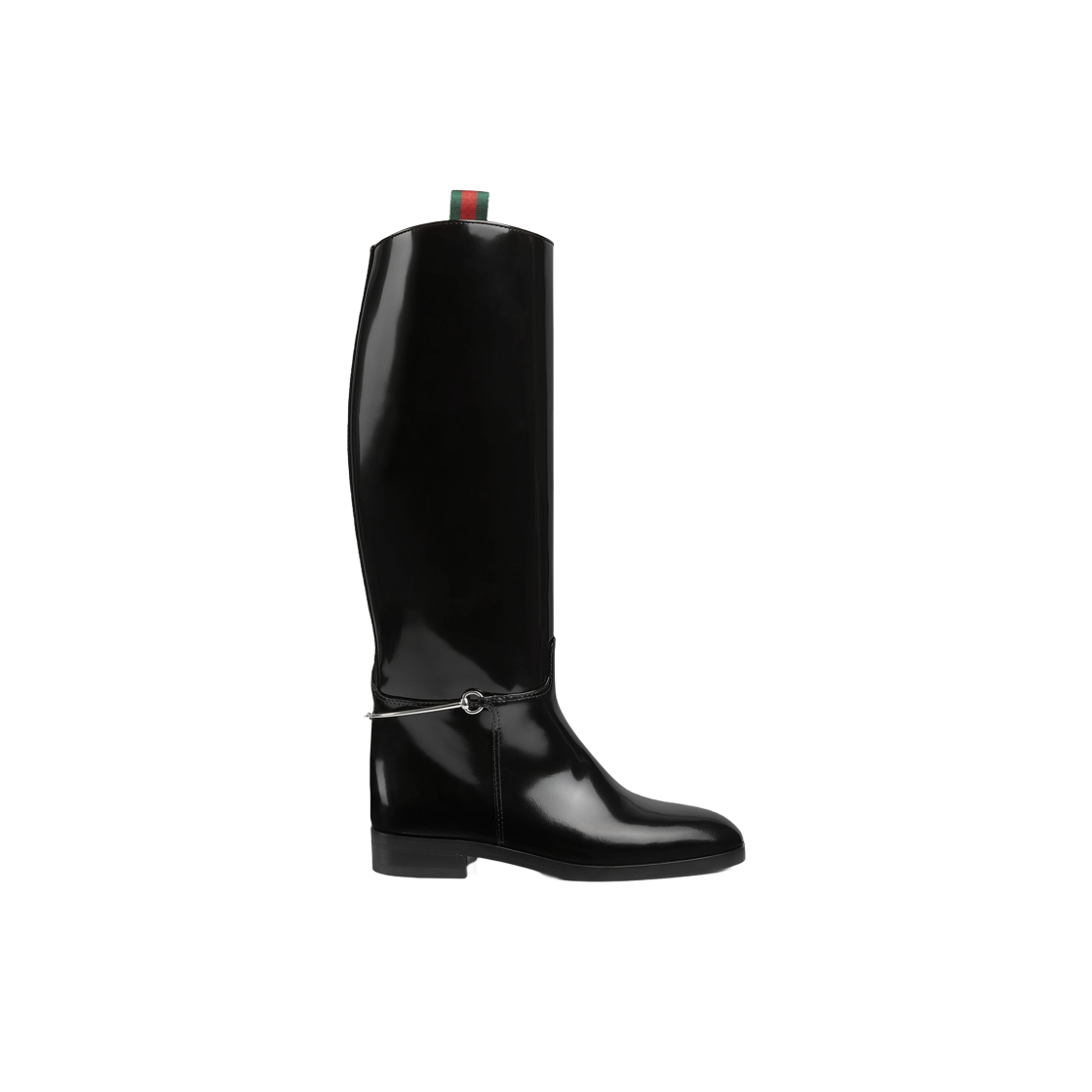 (W) Gucci Slim Horsebit Boots Black Shiny Leather
