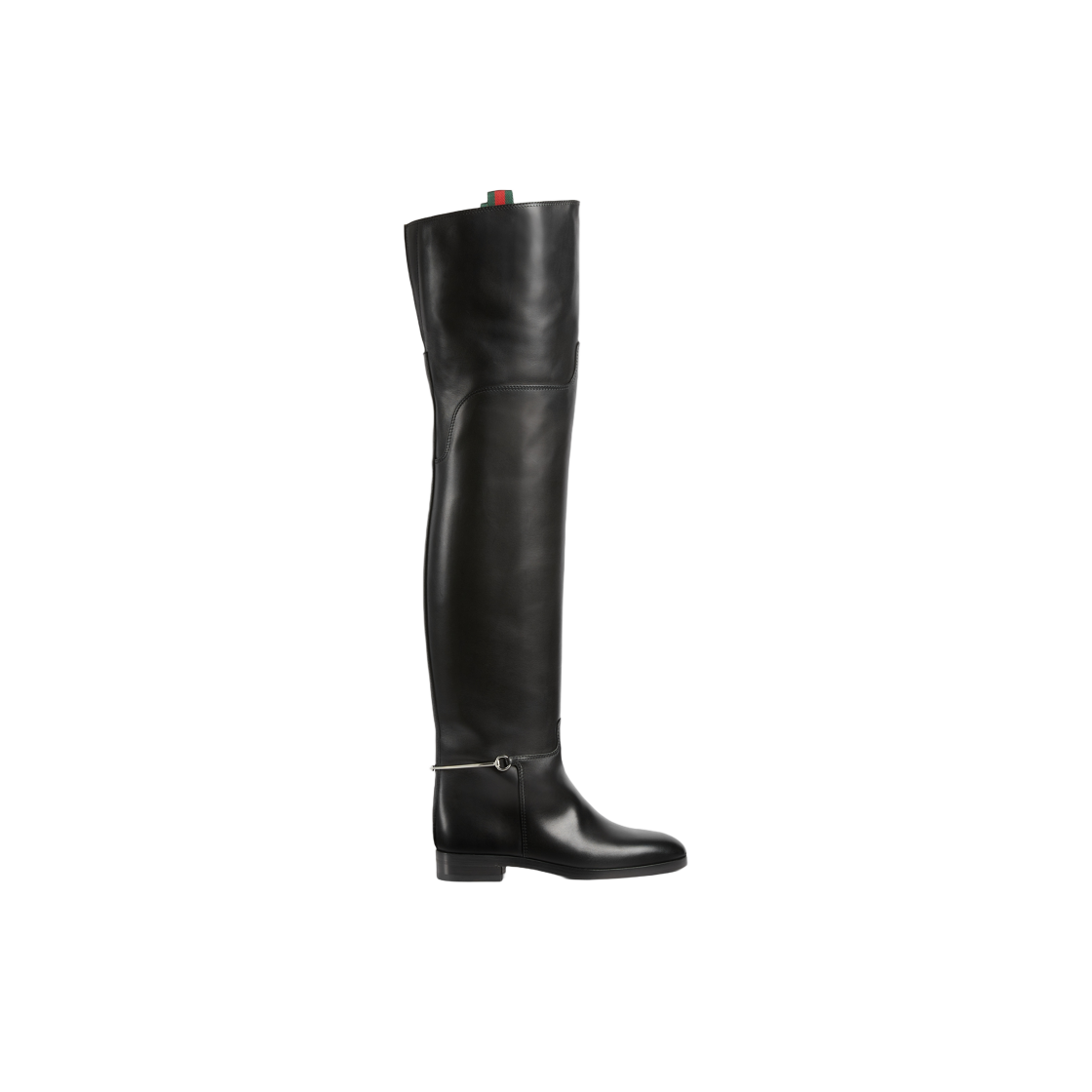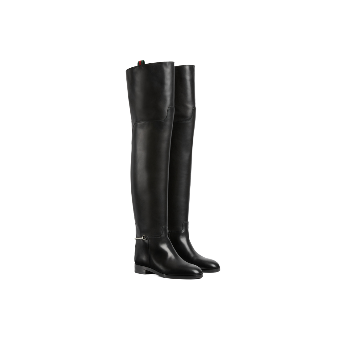 (W) 구찌 슬림 홀스빗 니 하이 부츠 블랙