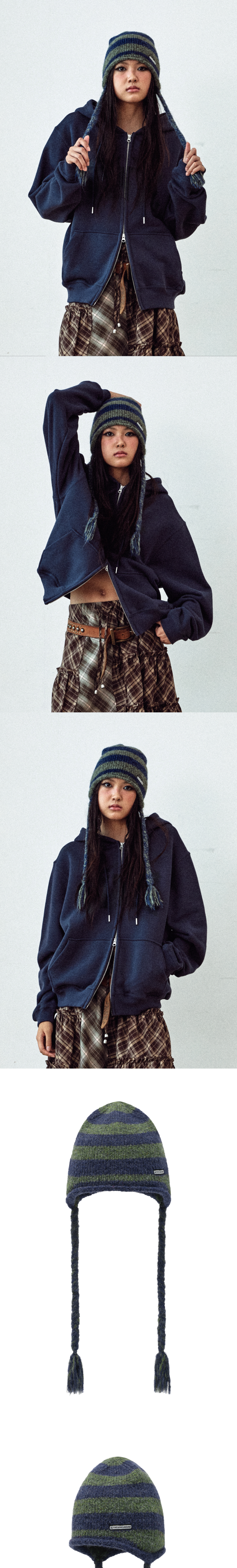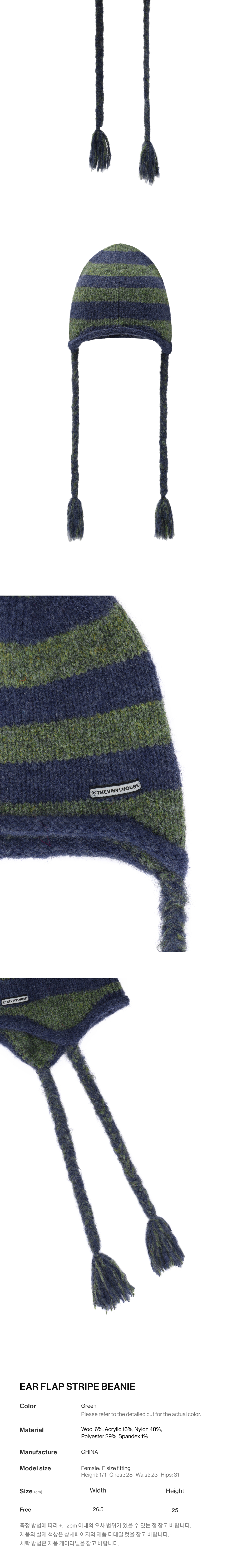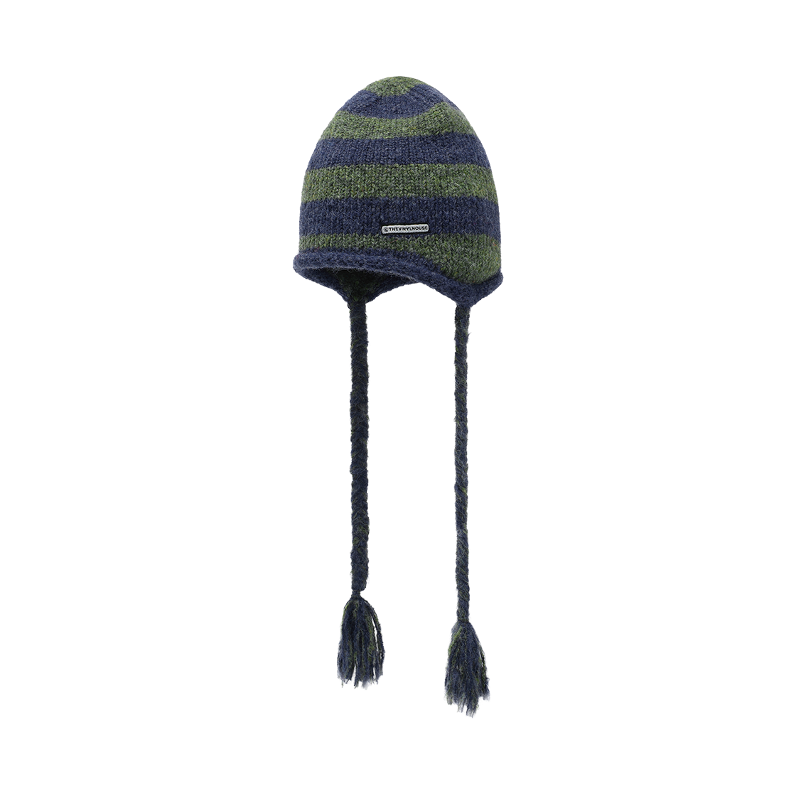 더바이닐하우스 이어 플랩 스트라이프 비니 그린