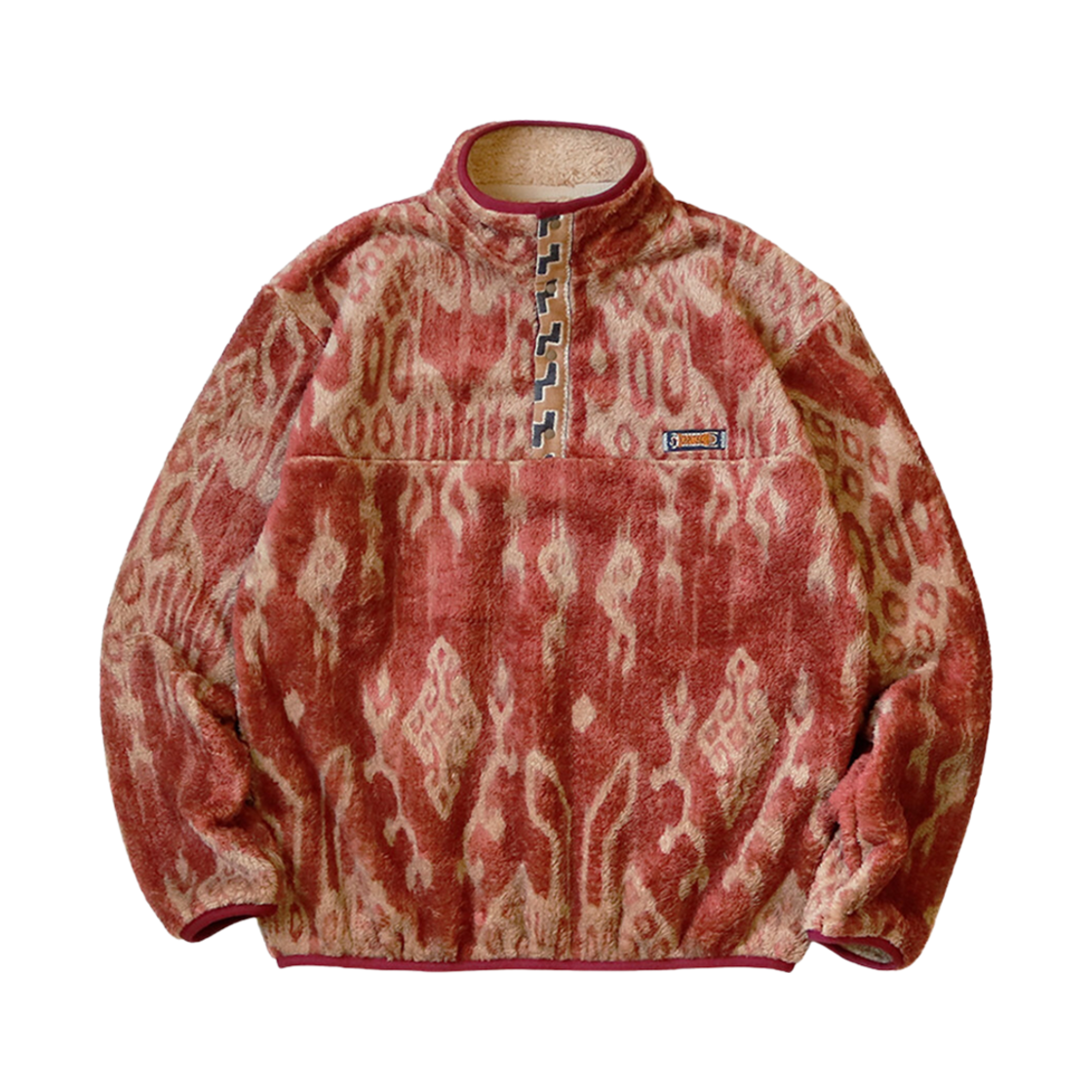캐피탈 자바 카스리 패턴 스냅-T 플리스 풀오버 레드