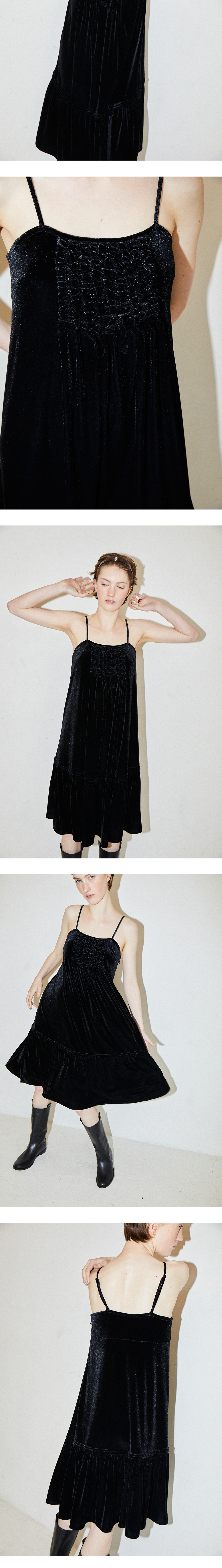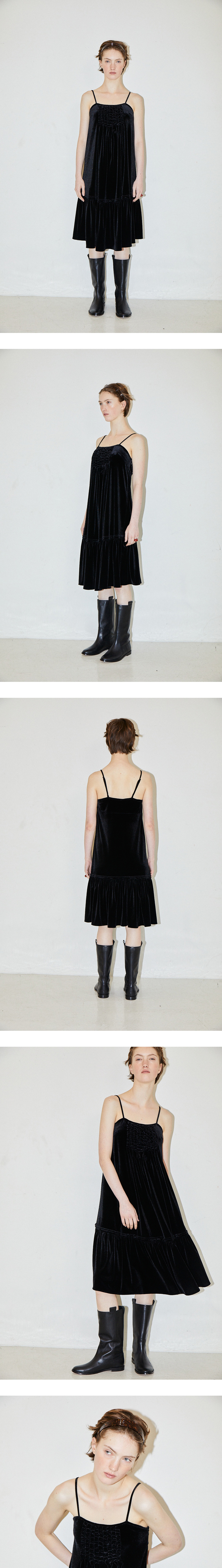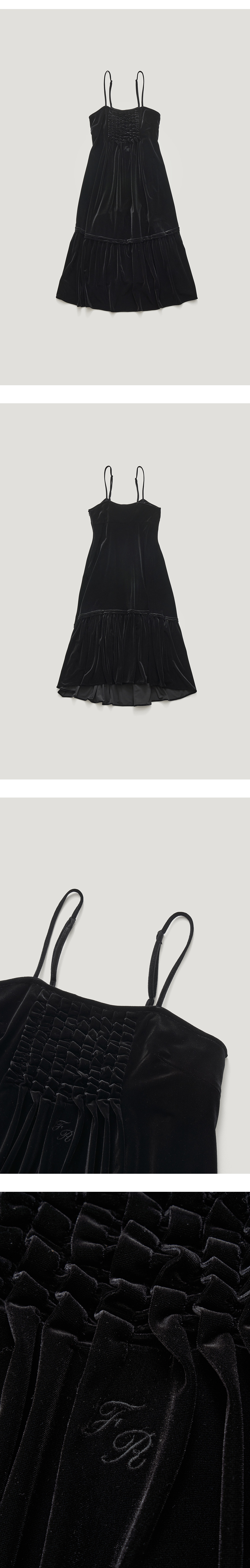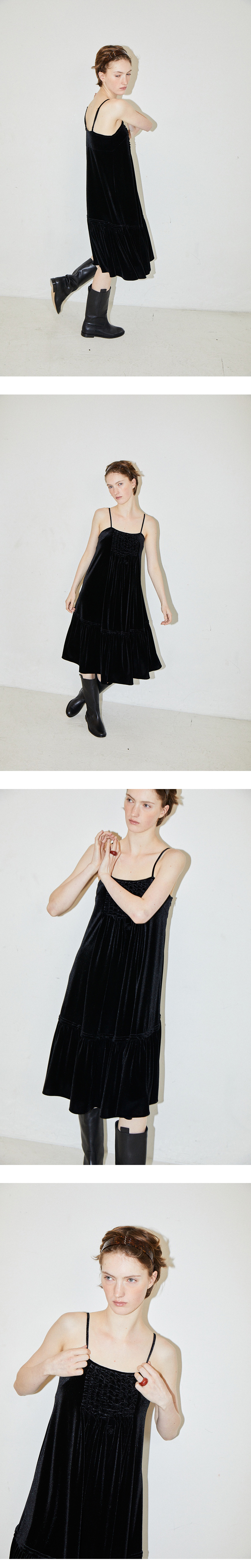 가슴 라인을 따라 들어간 드레이피한 셔링 디테일로 입체적인 형태감이 느껴지는 슬리브리스 원피스입니다. 폭신 폭신한 촉감의 벨벳 소재로 제작되어 고급스러운 광택감이 포인트이며 무릎 라인 아래로 셔링을 잡 아 풍성한 실루엣을 연출했습니다.깊게 다운된 백 라인과 암홀 라인이 특징으로 편안한 착용감이 느껴지며 간결하게 떨어지는 얇은 스트랩으 로 체형에 맞게 길이 조절이 가능합니다. 가슴 셔링 위 파르벵 로고 자수 디테일로 포인트를 주어 마무리했습니다.