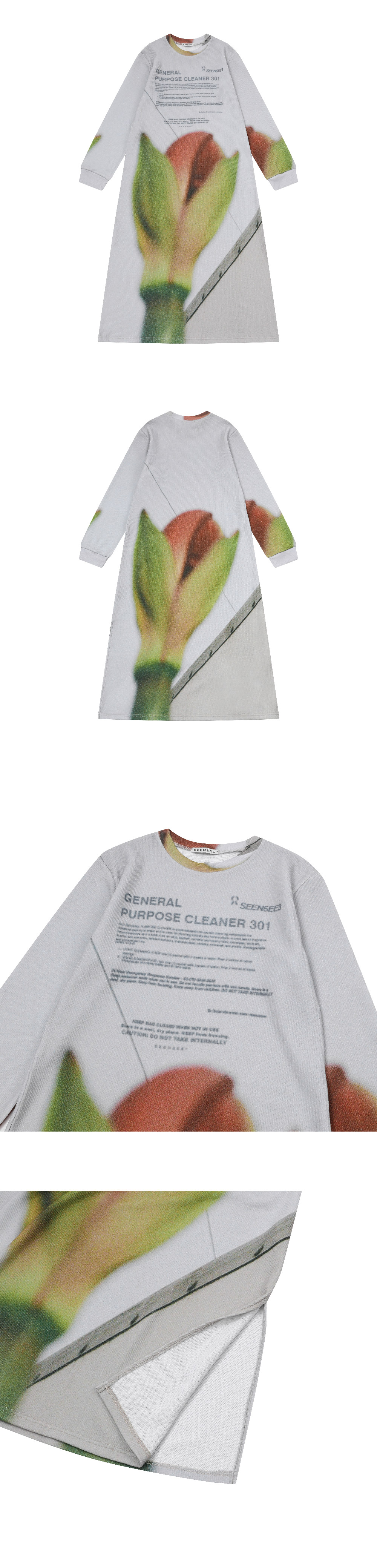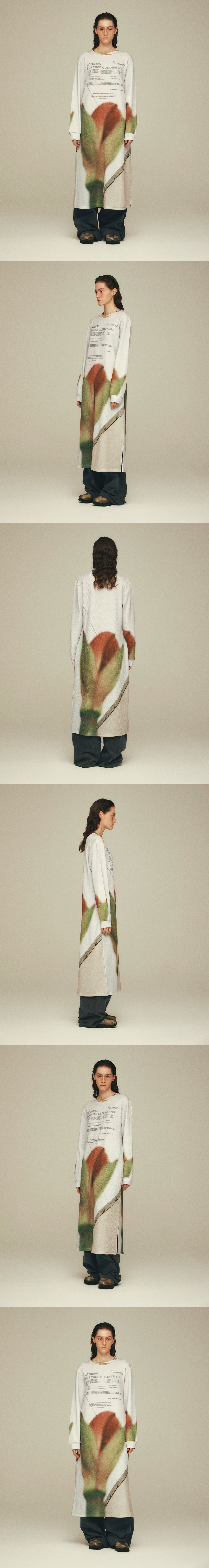 Detail - London Colombia Flower market - Photo Printing - Round neck - Knit Fabric - Long Length - 런던 컬럼비아 플라워 마켓 - 포토 프린팅 - 라운드 넥 - 니트 원단 - 긴 기장감 Made in South Korea Washing Information Machine wash cold With like colours Do not bleach