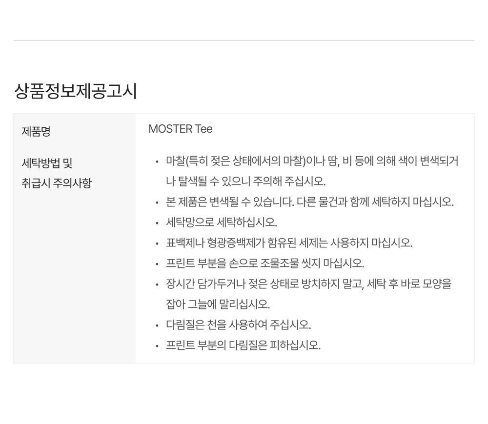 상품정보제공 고시