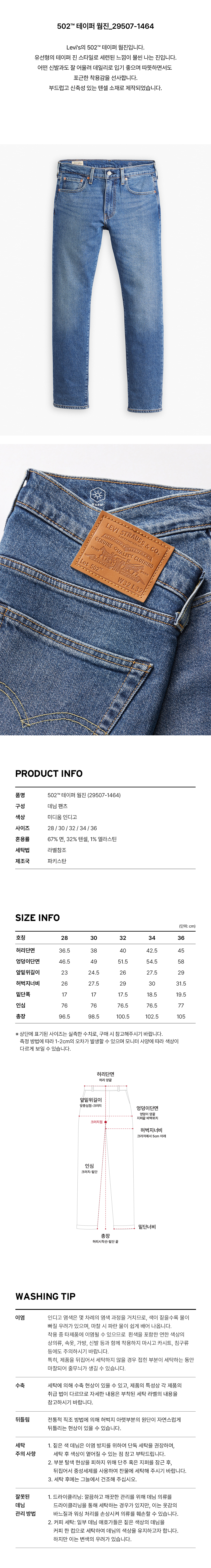 리바이스 502™ 테이퍼드 웜진 미디엄 인디고