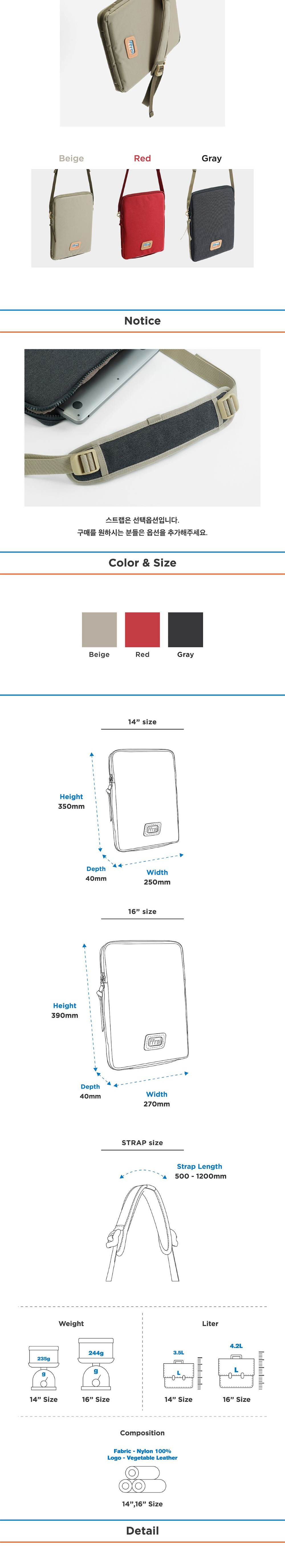 프루아 트래블러 뉴 랩탑 파우치 14인치 숄더 스트랩 그레이