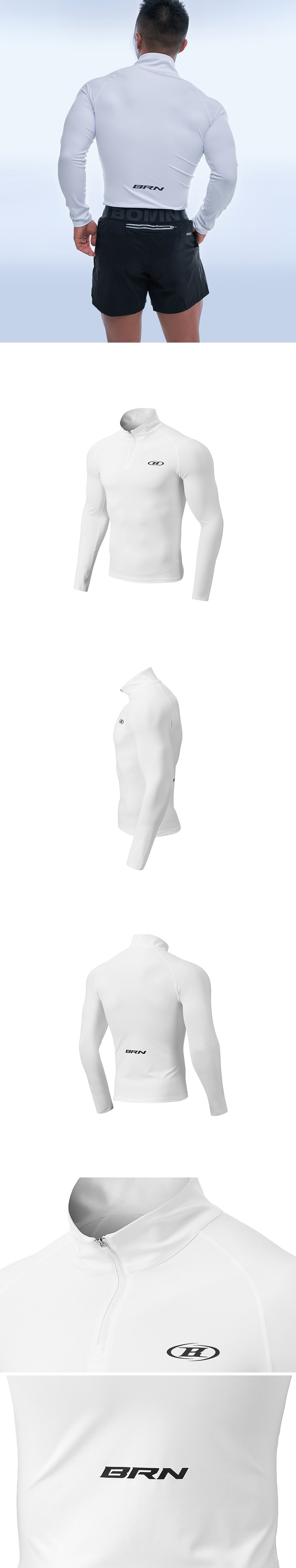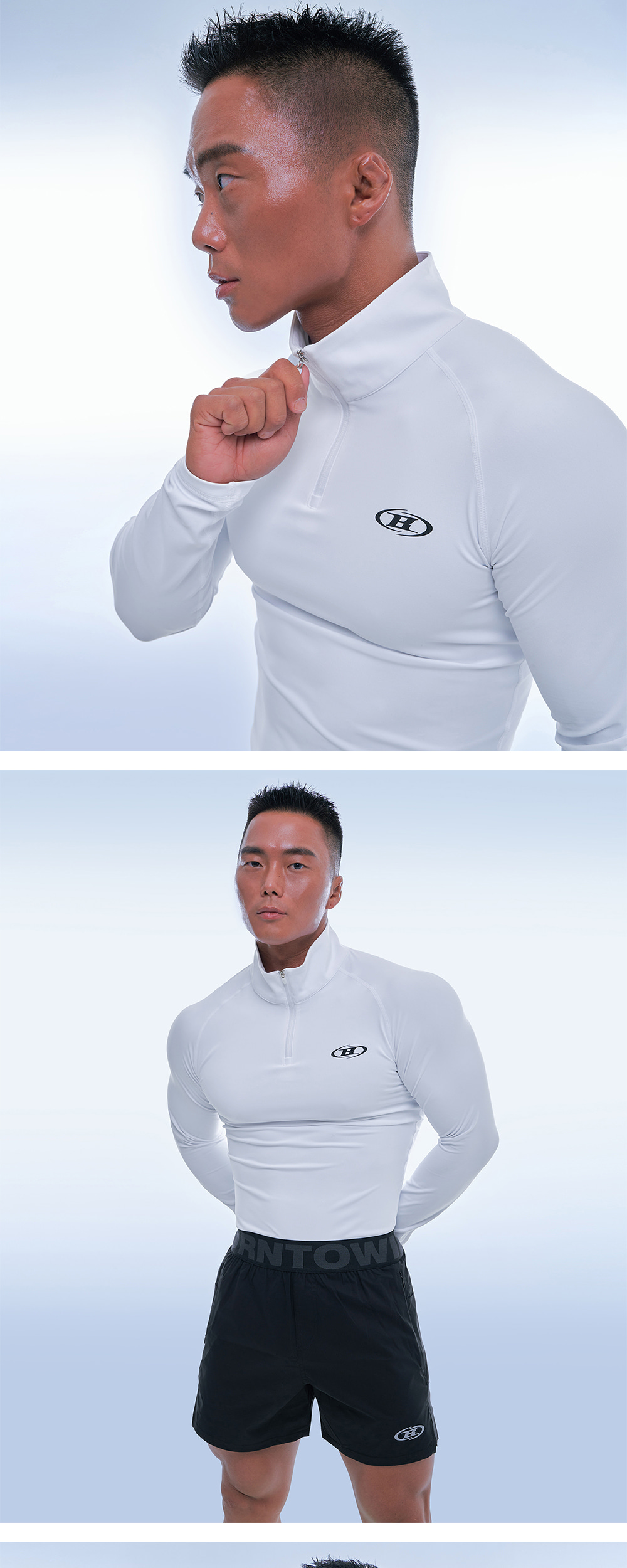 본투윈 심볼 B 머슬핏 하프집업 롱슬리브 화이트