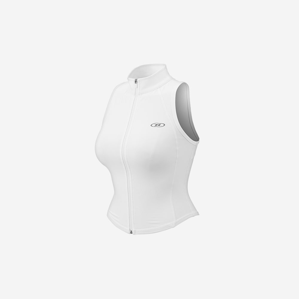 BORN TO WIN Active Line Full Zip-Up Tank Top White