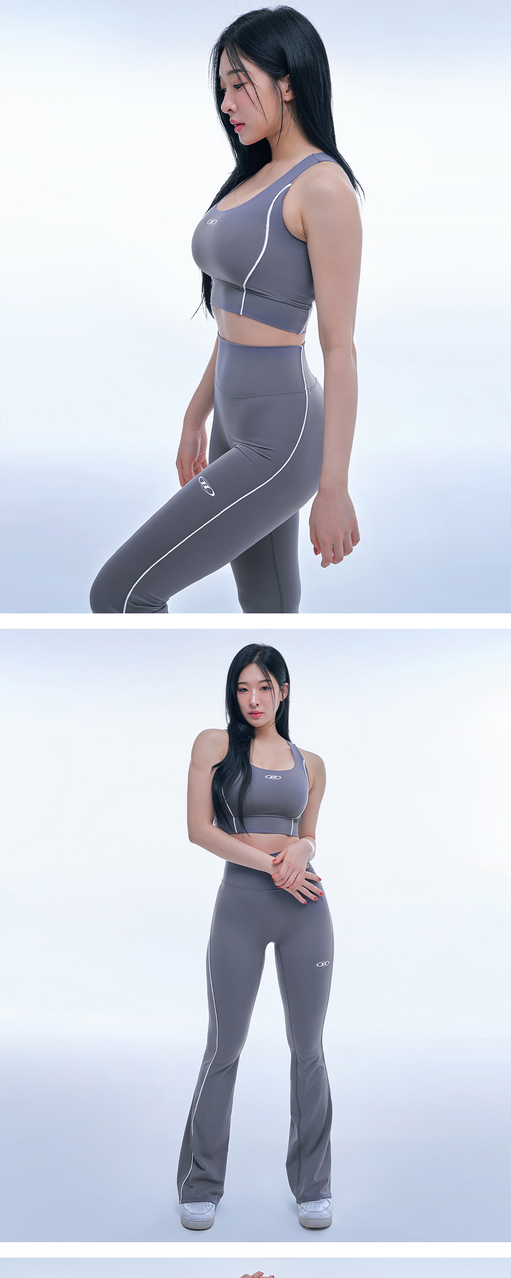 본투윈 심볼 B 파이핑 부츠컷 레깅스 차콜