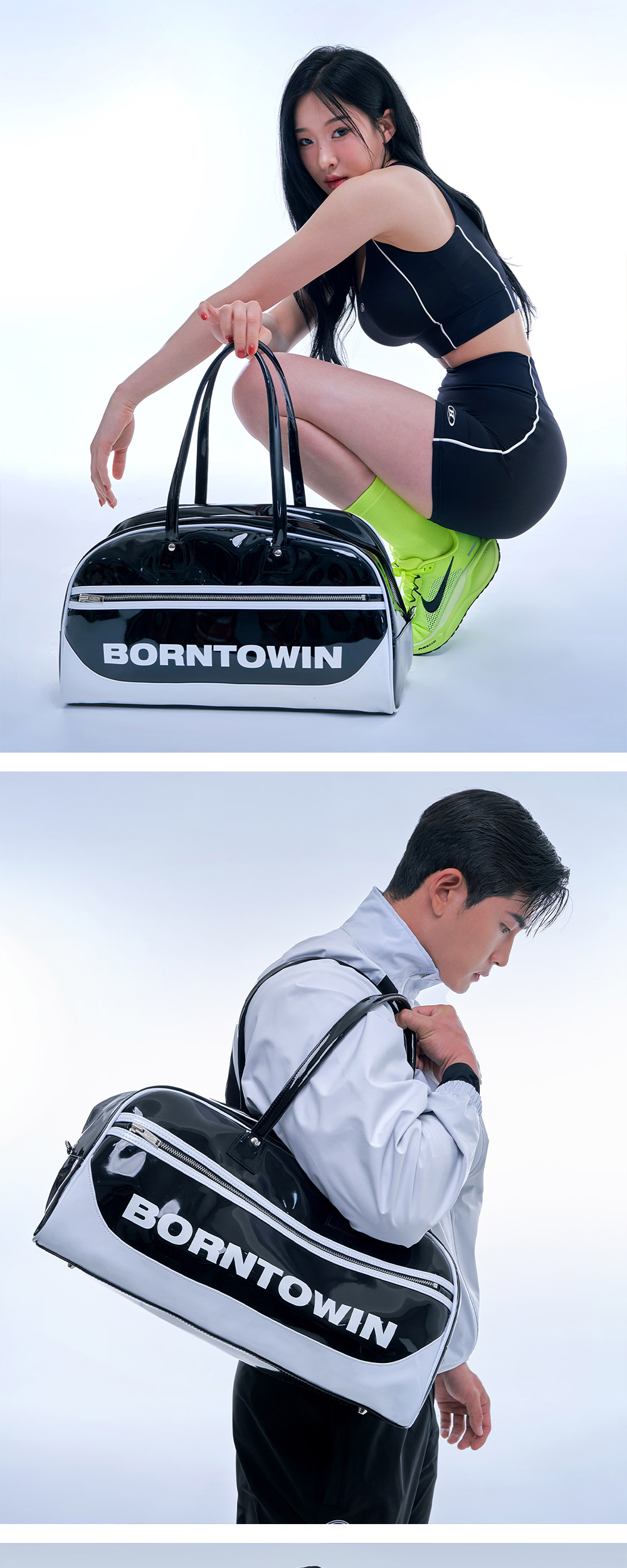 * 에나멜 숄더백 - 글로시한 광택감의 에나멜 원단 - 본투윈 로고 실크 인쇄 - 2-WAY 지퍼 방식 - 심볼 B 로고 슬라이더 디테일 - 전면 포켓 디테일 - 내부 카드꽂이 & 지퍼 포켓으로 다양한 수납 가능 - 바닥면 스터드 지지대로 손상 최소화 - 스트랩 활용으로 크로스백 연출 가능 Material : POLYURETHANE 100%