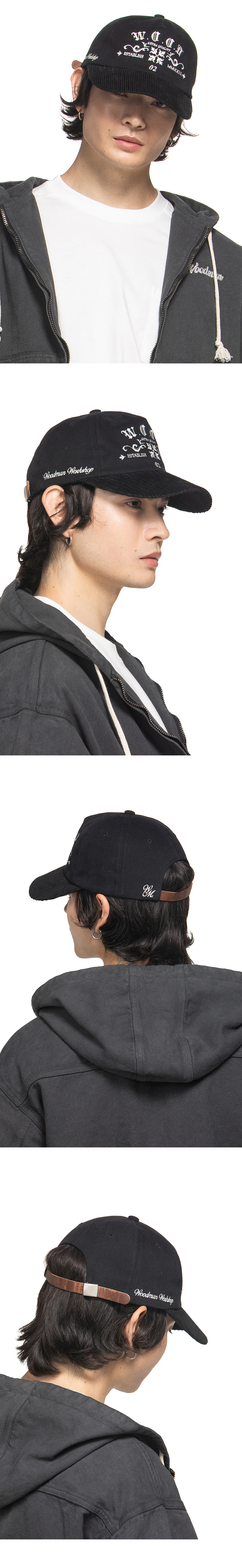 앤틱한 그래픽과 두가지 원단의 조합으로 디자인된 볼캡 입니다. 일반적인 볼캡보다 살짝 더 깊고 넓은 핏으로 제작되었습니다. - 소가죽 모자 스트랩 - 우드먼 레이저 각인 모자 조이개