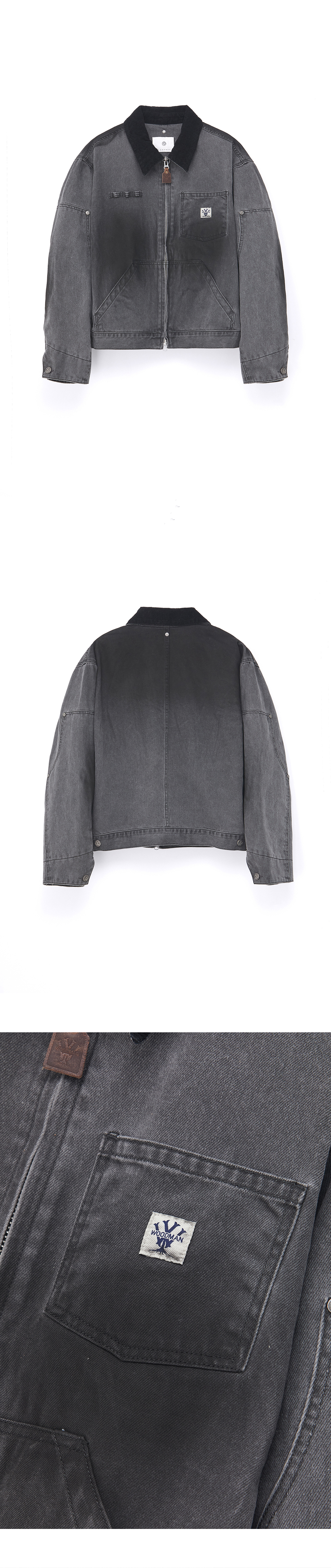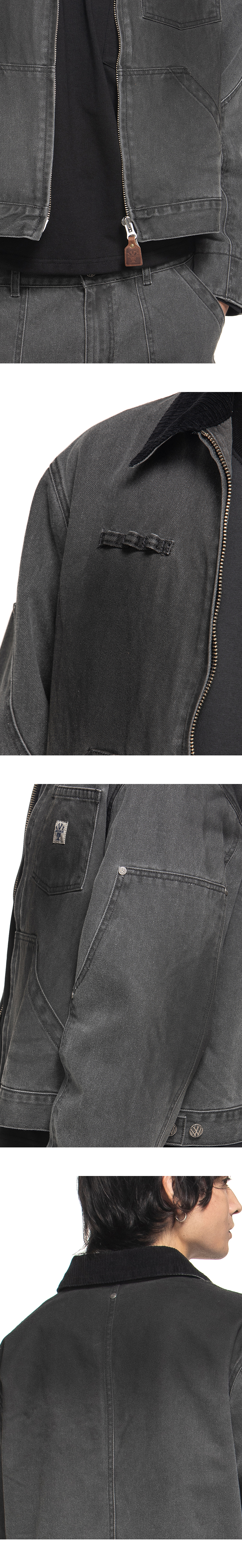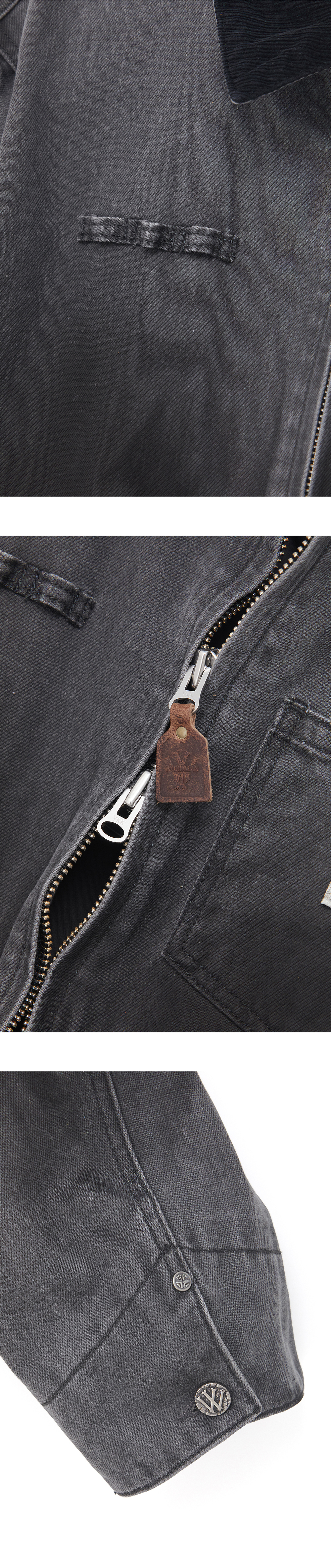 오일 워싱 기법과 피그먼트 워싱이 적용된 워크 자켓 입니다. 짧은 기장감과 빈티지한 감성, 그리고 트렌디한 감각을 중심으로 디자인 되었습니다. 소매에 더블니 팬츠에 들어가는 덧댐 디테일과 가슴에 아웃포켓과 팬꽂이 디테일이 디자인 되었습니다. - 가슴 아웃포켓 - 팬꽂이 디테일 - 소매 더블니 팬츠 디테일 - 8# YKK 투웨이 지퍼 - 소가죽 지퍼 풀러 - 우드먼 W 켄톤 - 우드먼 나이태 리벳 - 피그먼트 워싱 패브릭 - 오일 워싱