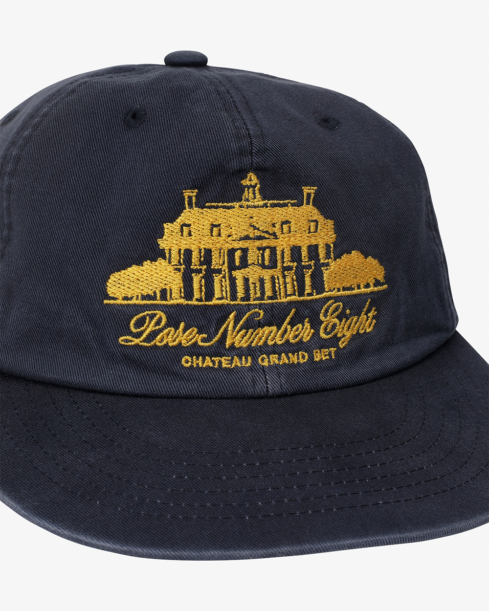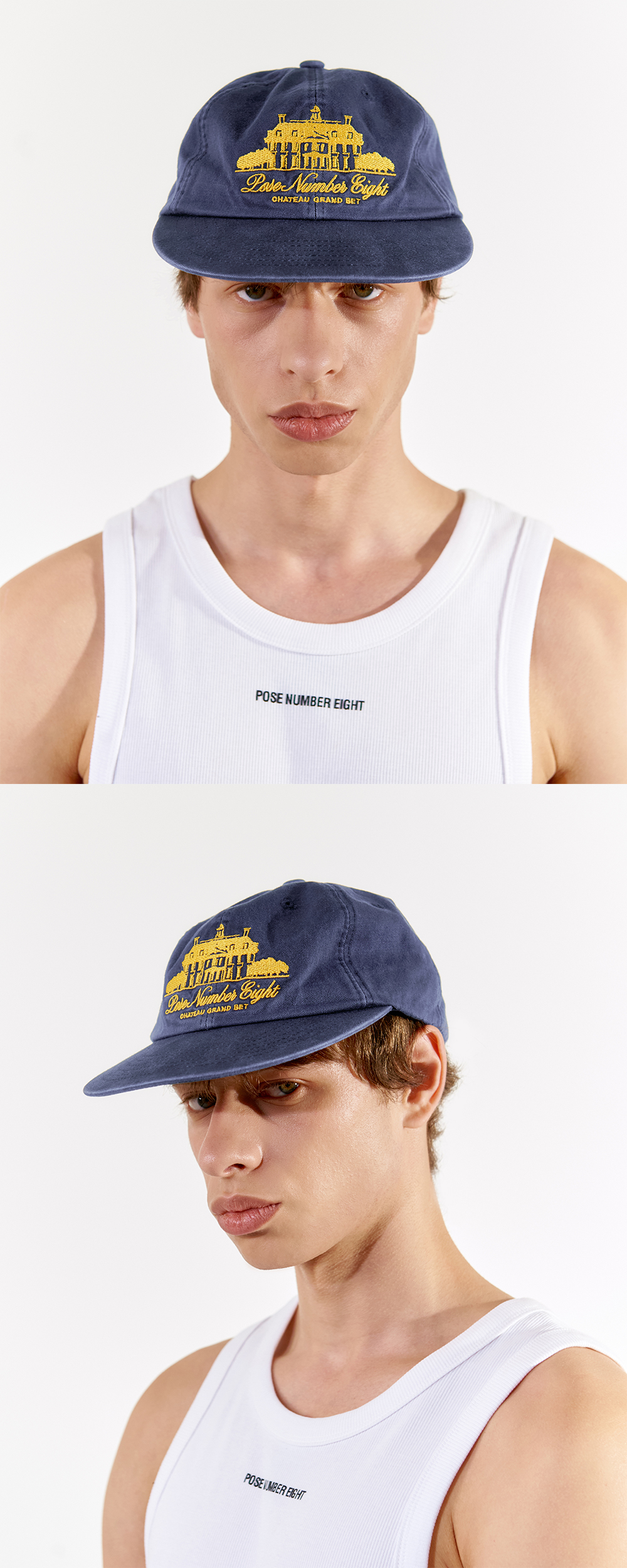 구김이 적은 카치온 원단에 가먼트 워싱을 더하여 부드럽고 빈티지한 컬러를 구현한 볼캡입니다. 6패널 패턴으로 제작하였으며 와이드한 핏감과 넓은 챙을 통해 다양한 스타일링이 가능합니다. 모자 전면 패널에 'CHATEAU GRAND BET' 아트워크로 포인트를 주었습니다. 오픈백 형태로 버클을 통해 사이즈 조절이 가능합니다. - MEN 185cm 65kg, ONE SIZE 착용