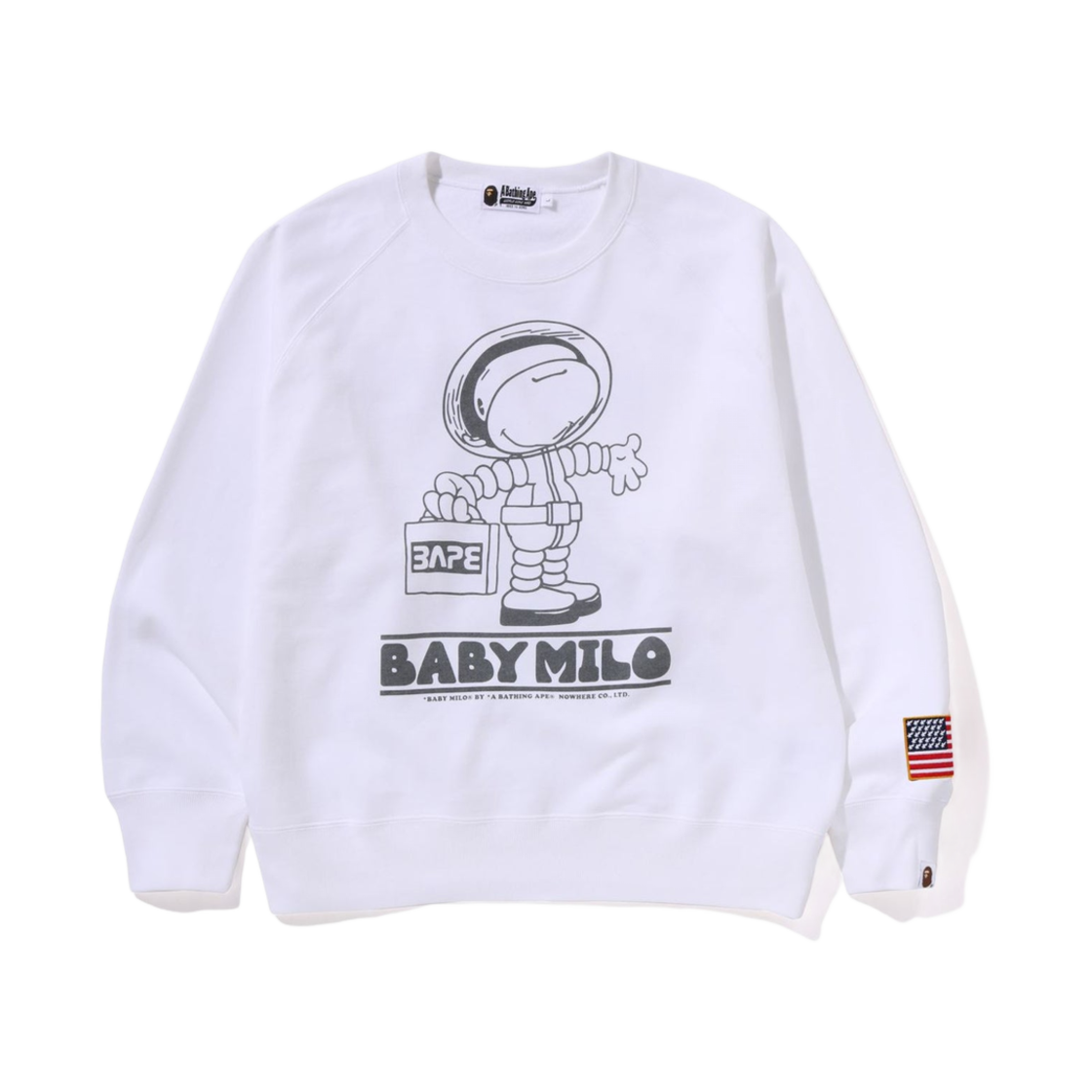 BAPE Astronauts Milo Relaxed Fit Crewneck Sweatshirt White