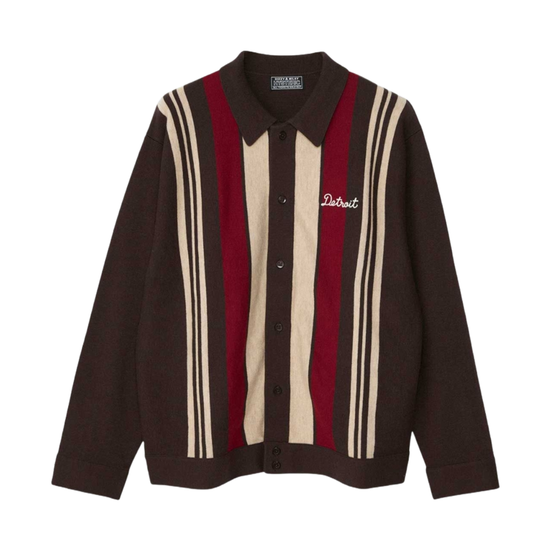 Hysteric Glamour Devil's Lounge Embroidered Polo Collar Cardigan Brown