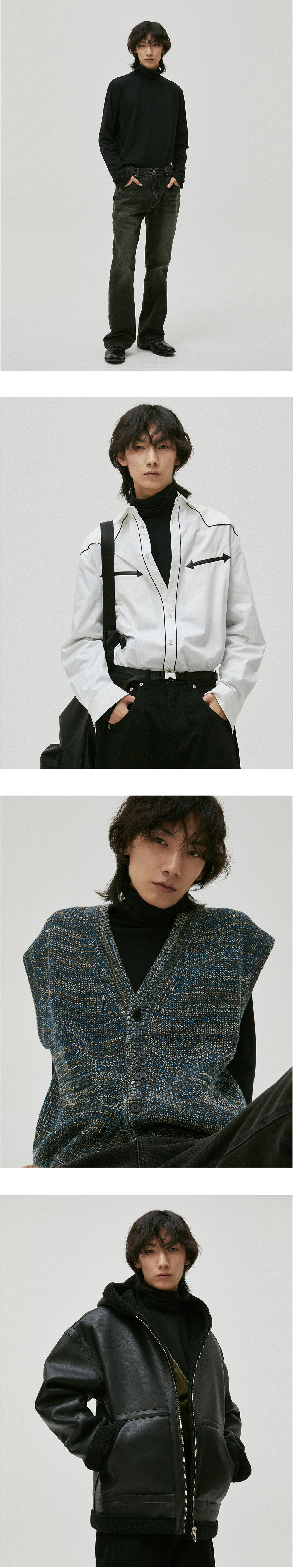 하이투 스탠다드 핏 터틀넥 풀오버 블랙