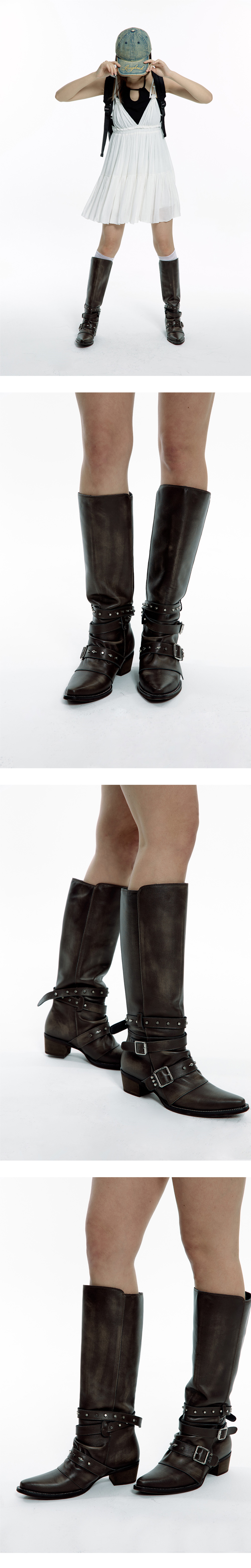카니아는 웨스턴 부츠에서 영감을 받아 독창적인 디자인을 완성했습니다. 클래식한 웨스턴 부츠의 매력을 현대적으로 재해석한 카니아 부츠는 버클 디테일과 각기 다른 아일렛이 포인트로 자리잡고 있습니다. 부츠의 외피는 부드러운 소가죽으로 제작되어, 뾰족한 앞 코 쉐잎에도 불구하고 편안한 착화감을 제공합니다. Material : Cow leather 100%