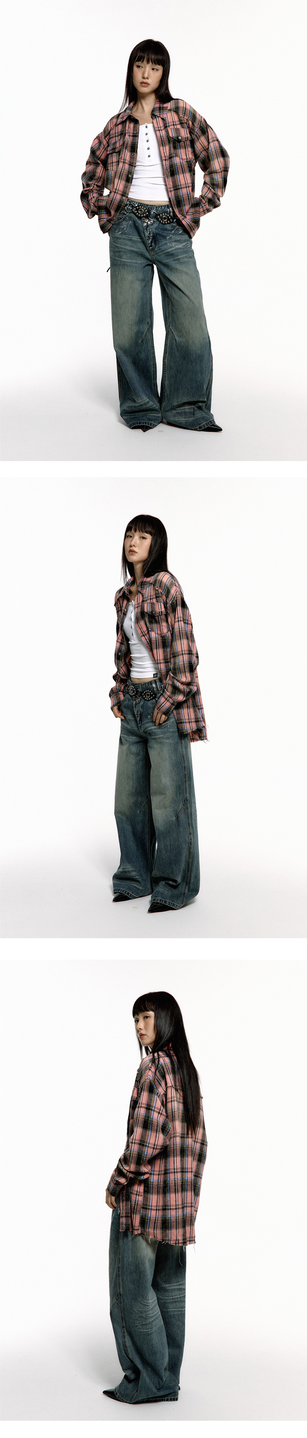 박시한 루즈핏으로 편안하게 착용할 수 있으며, 강한 워싱 처리가 되어 빈티지한 감성을 더했습니다. 앞면과 뒷면에는 실버 아일렛 디테일이 더해져 러프넥 특유의 매력을 강조했으며, 가슴 쪽에는 러프넥 로고 자수가 포인트로 들어가 있습니다. 걸쳐 입거나 허리에 둘러 다양한 스타일을 연출할 수 있습니다. - Cotton 100% - Model Info : Suji 170cm 52kg - Fitting size : FREE