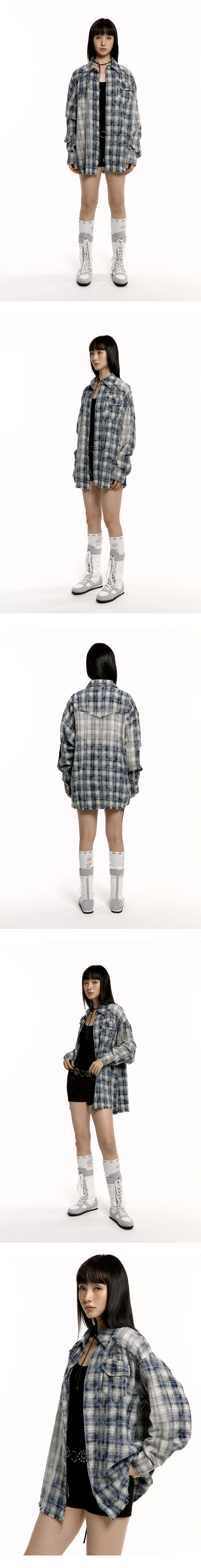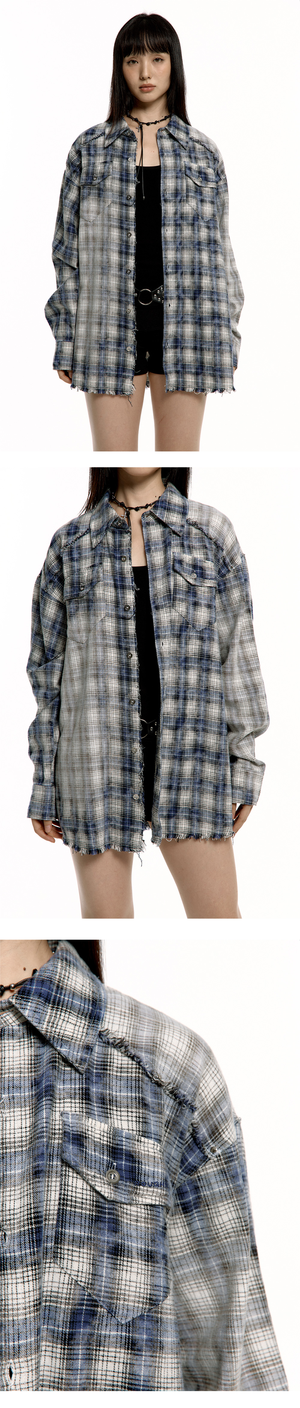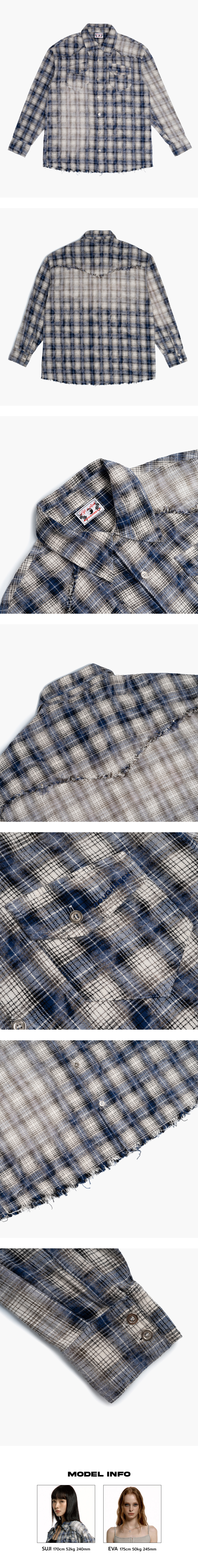 박시한 루즈핏으로 편안하게 착용할 수 있으며, 강한 워싱 처리가 되어 빈티지한 감성을 더했습니다. 앞면과 뒷면에는 실버 아일렛 디테일이 더해져 러프넥 특유의 매력을 강조했으며, 가슴 쪽에는 러프넥 로고 자수가 포인트로 들어가 있습니다. 걸쳐 입거나 허리에 둘러 다양한 스타일을 연출할 수 있습니다. - Cotton 100% - Model Info : Suji 170cm 52kg - Fitting size : FREE