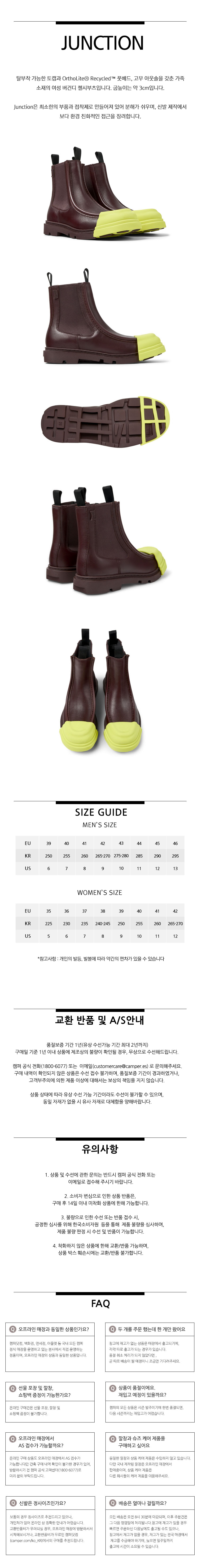 캠퍼 여성 정션 부츠 버건디