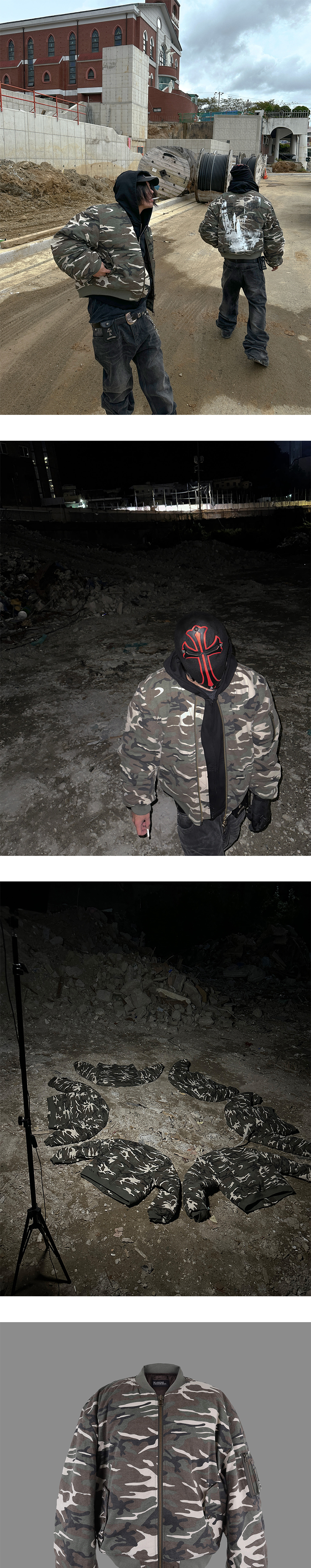 Two way YKK zipper YKK SNAP / BROWN LINGING INNER POCKET (both sides) VINTAGE WASHING CAMO COTTON